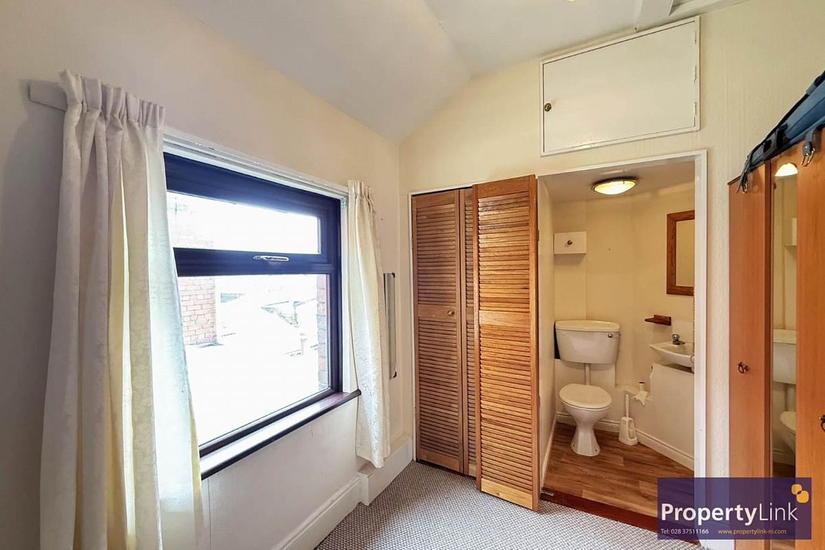 Rear aspect bedroom offering carpet floor covering and toilet off offering low flush WC and floating wash hand basin.