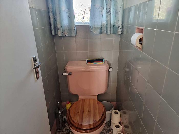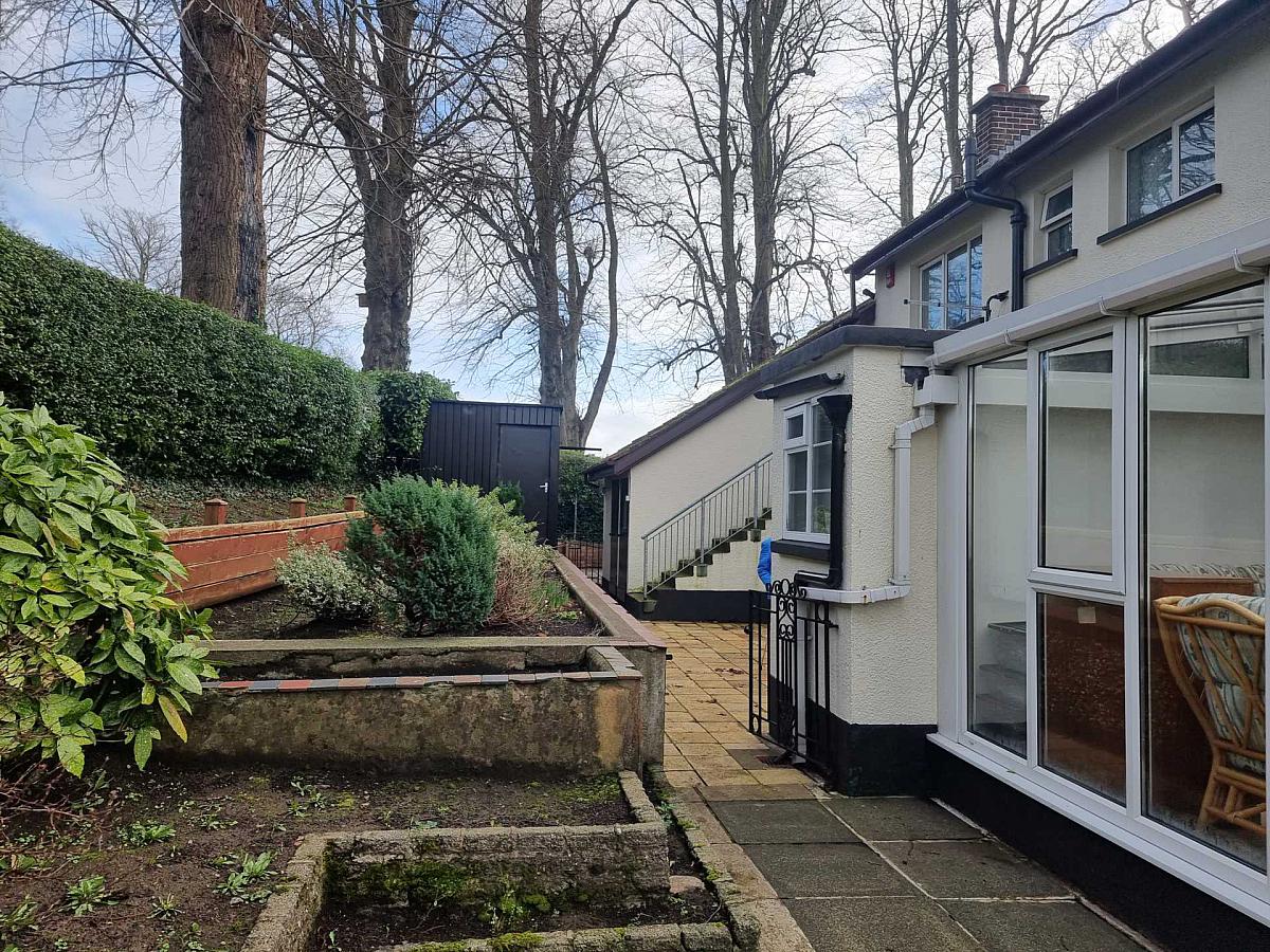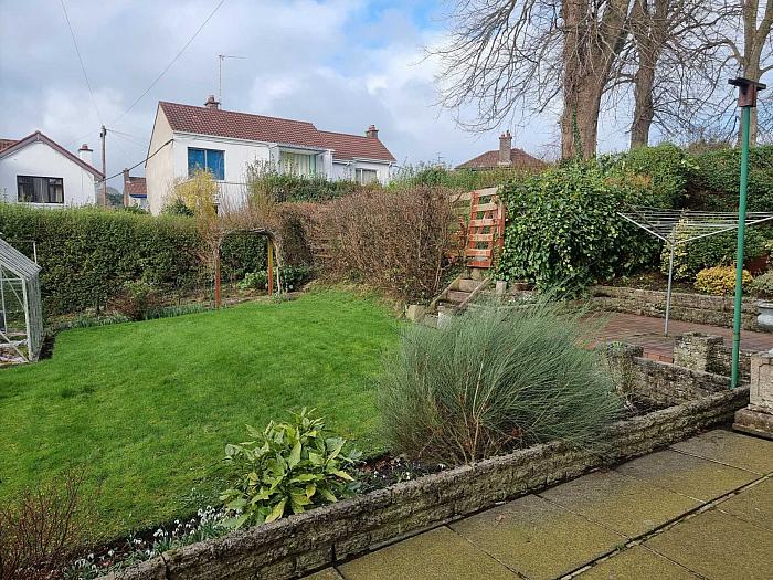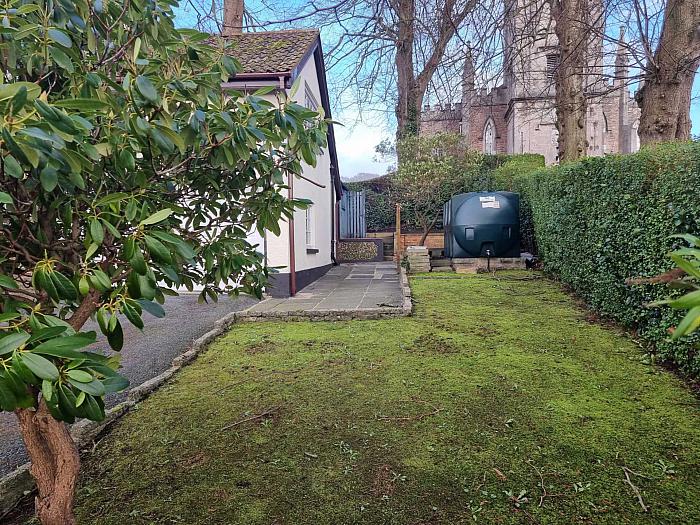 Paved enclosed yard to rear with raised flower beds, outside toilet with storage shed with plumbing for washing machine, tiled floor . To the side of the property there is a generous garden in lawn with green house ,flower and shrub beds and paved patio.. To the front the garden is in shrub beds with tarmac drive and vehicle parking.