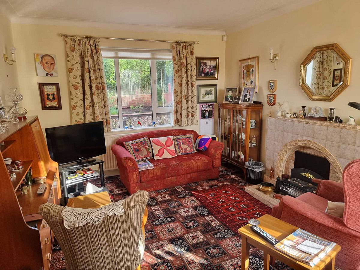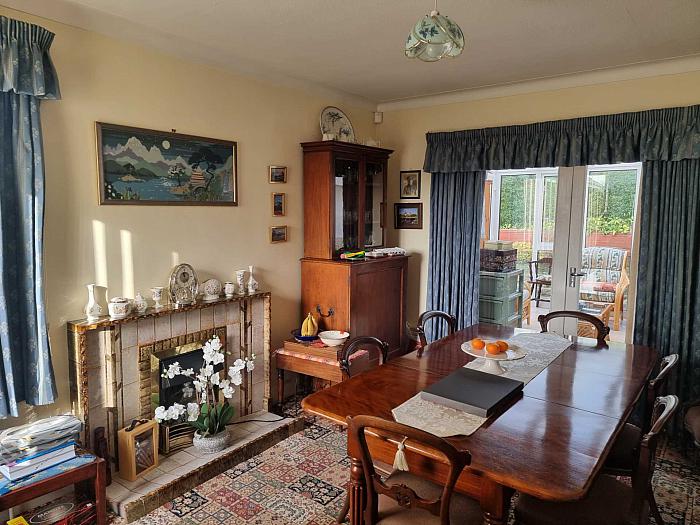 Open fire, tiled fireplace and hearth, French PVC double doors leading to conservatory.