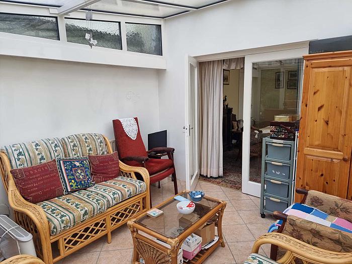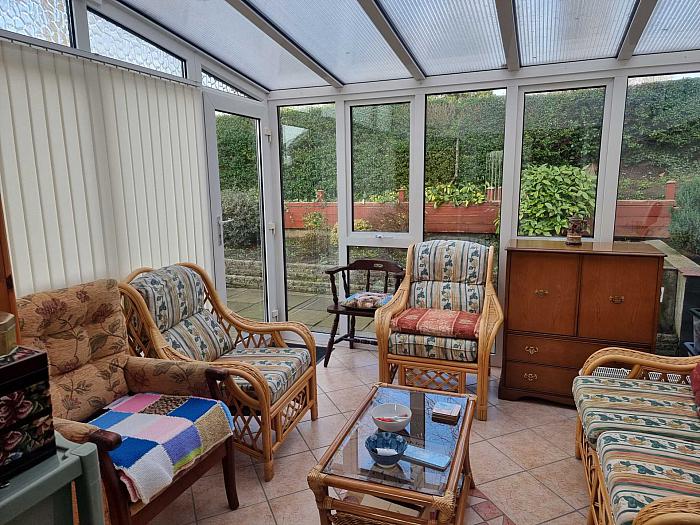 PVC conservatory with tiled floor and heating. Pvc door leading to rear garden.
