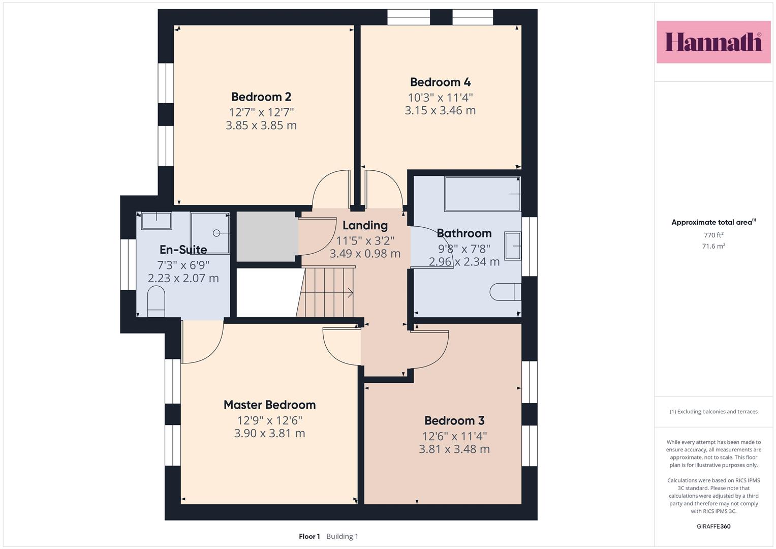Landing 11'5" X 3'2" (3.48m X 0.97m)