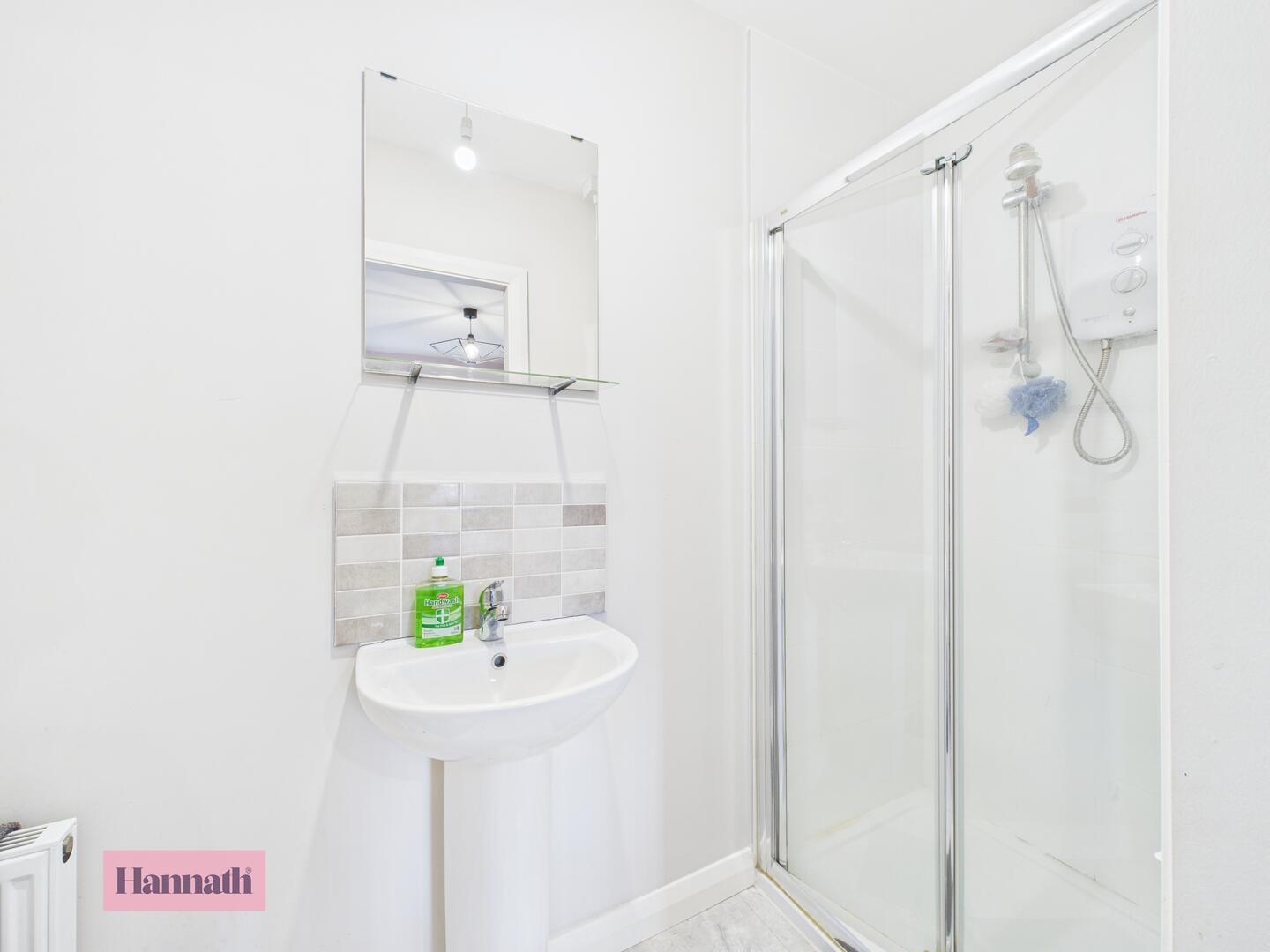 Electric shower unit, wash hand basin, w.c., tiled flooring, radaitor