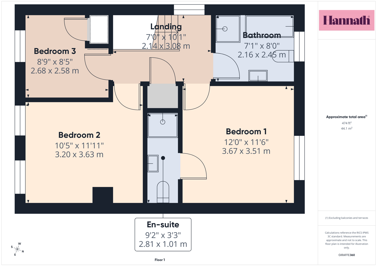 En-suite 9'2 X 3'3 (2.79m X 0.99m)