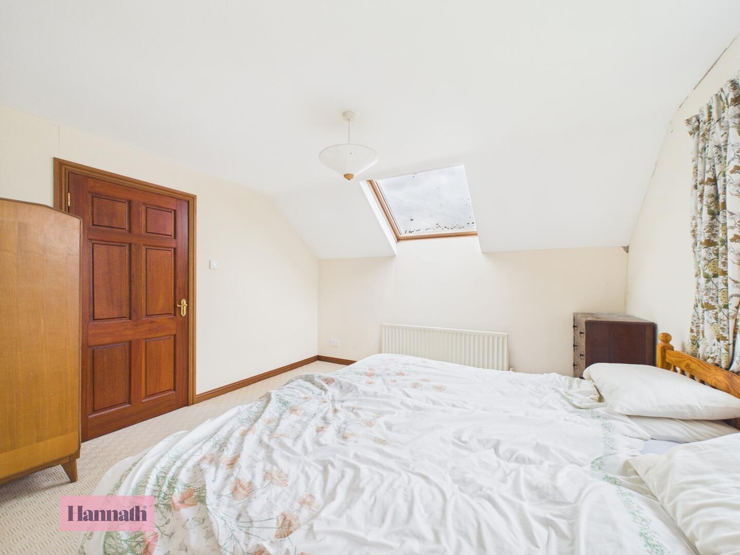 Bedroom 4 is a bright double room with a skylight and built-in wardrobe, offering a peaceful sleeping area on the first floor. The neutral tones and carpeting make it an inviting space with plenty of natural light.