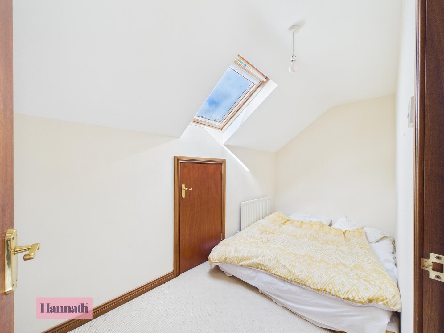 Bedroom 5 is a smaller, cosy bedroom with a skylight window and neutral decor. It could serve as a single bedroom or a useful guest room on the first floor.