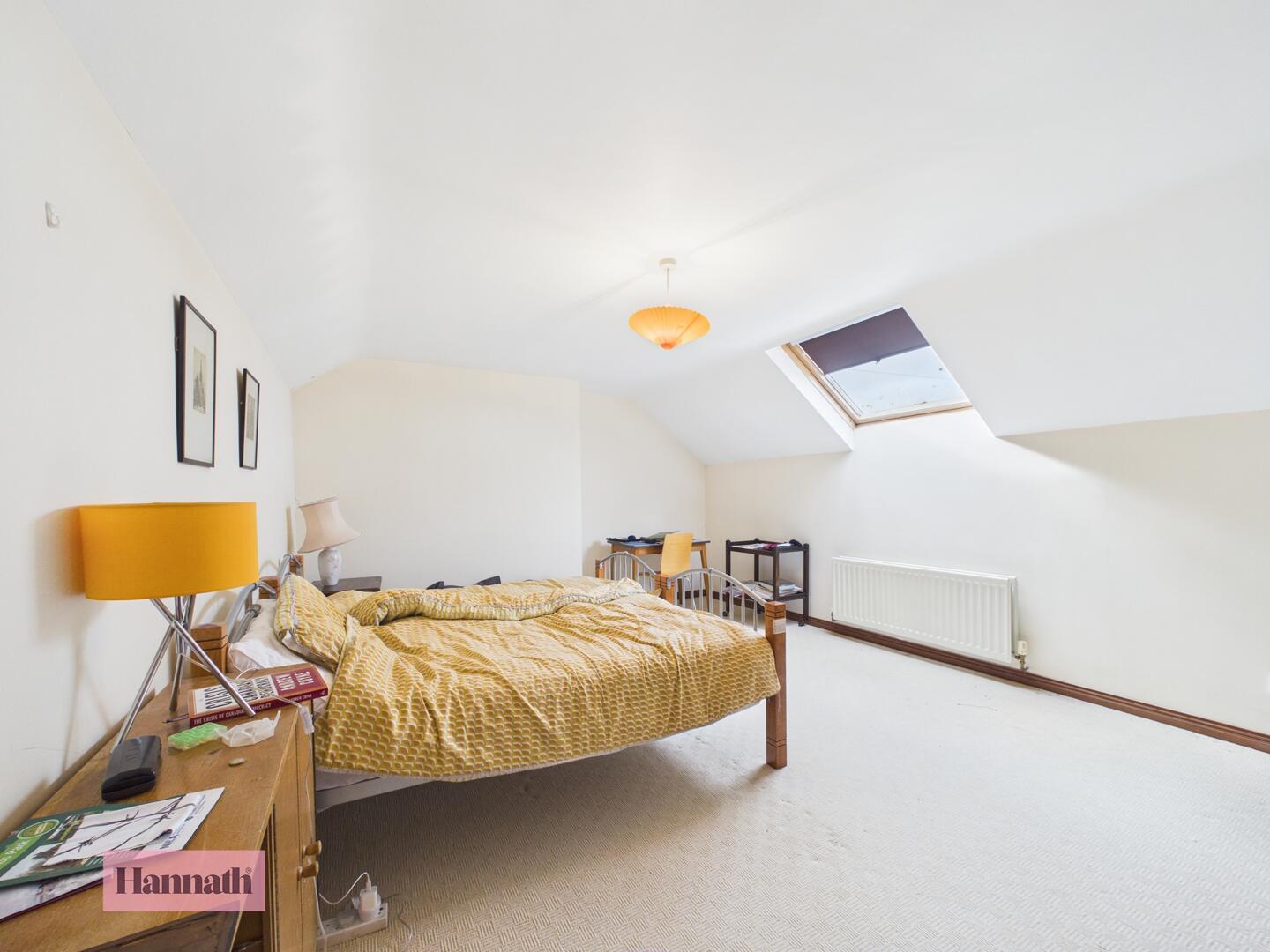 Bedroom 3 is a large, airy room with high ceilings and a skylight window providing natural light. Its generous proportions offer plenty of space for a double or king-size bed and additional furniture, creating a comfortable retreat on the first floor.