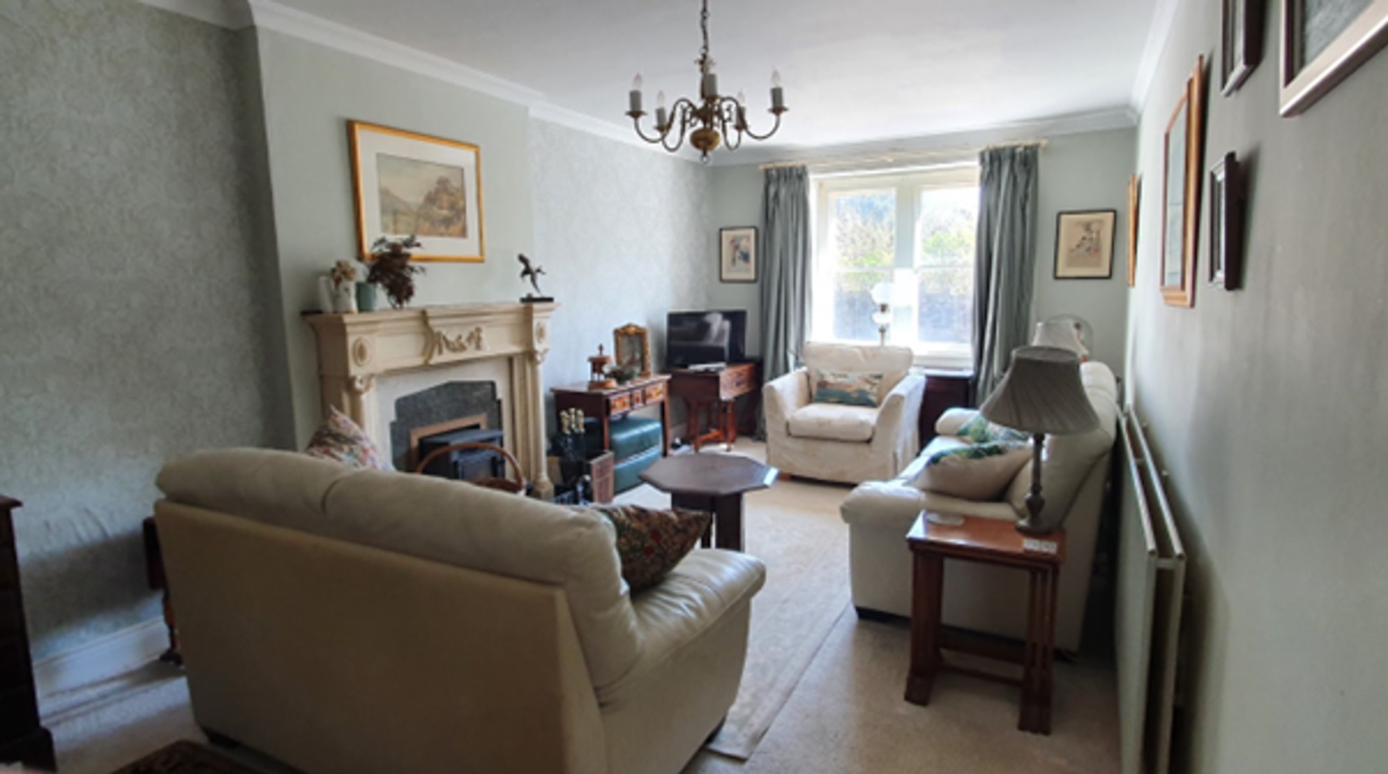 With attractive marble fireplace, multi fuel burning stove, coved ceiling.