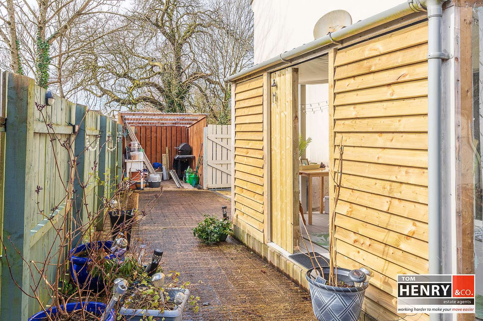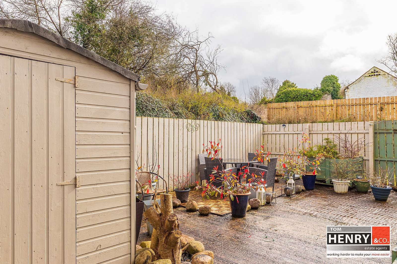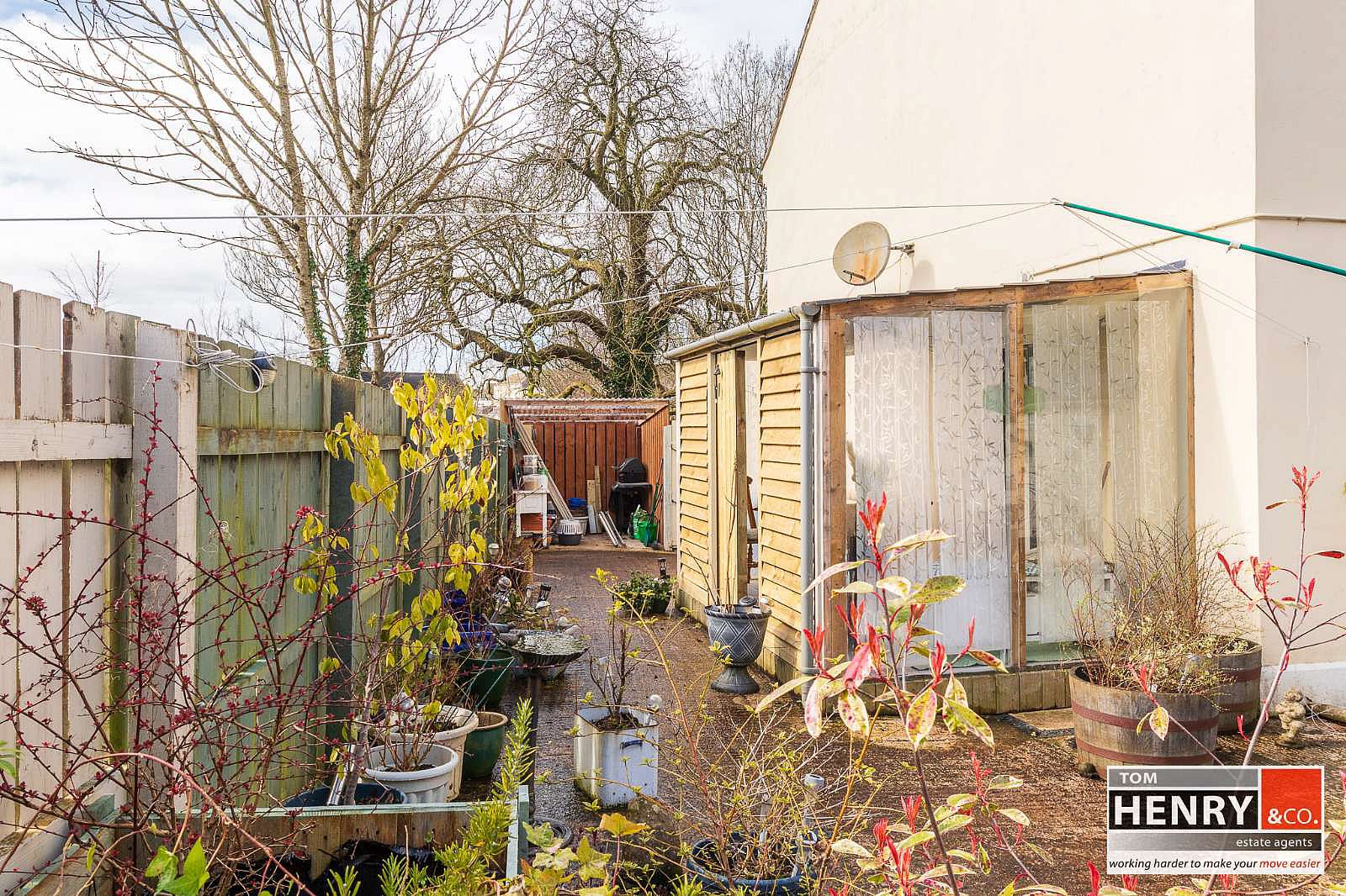 GARDEN TO REAR LAID TO CONCRETE. OUTSIDE WATER TAP. ENCLOSURE FOR OIL TANK & BURNER. GARDEN SHED.