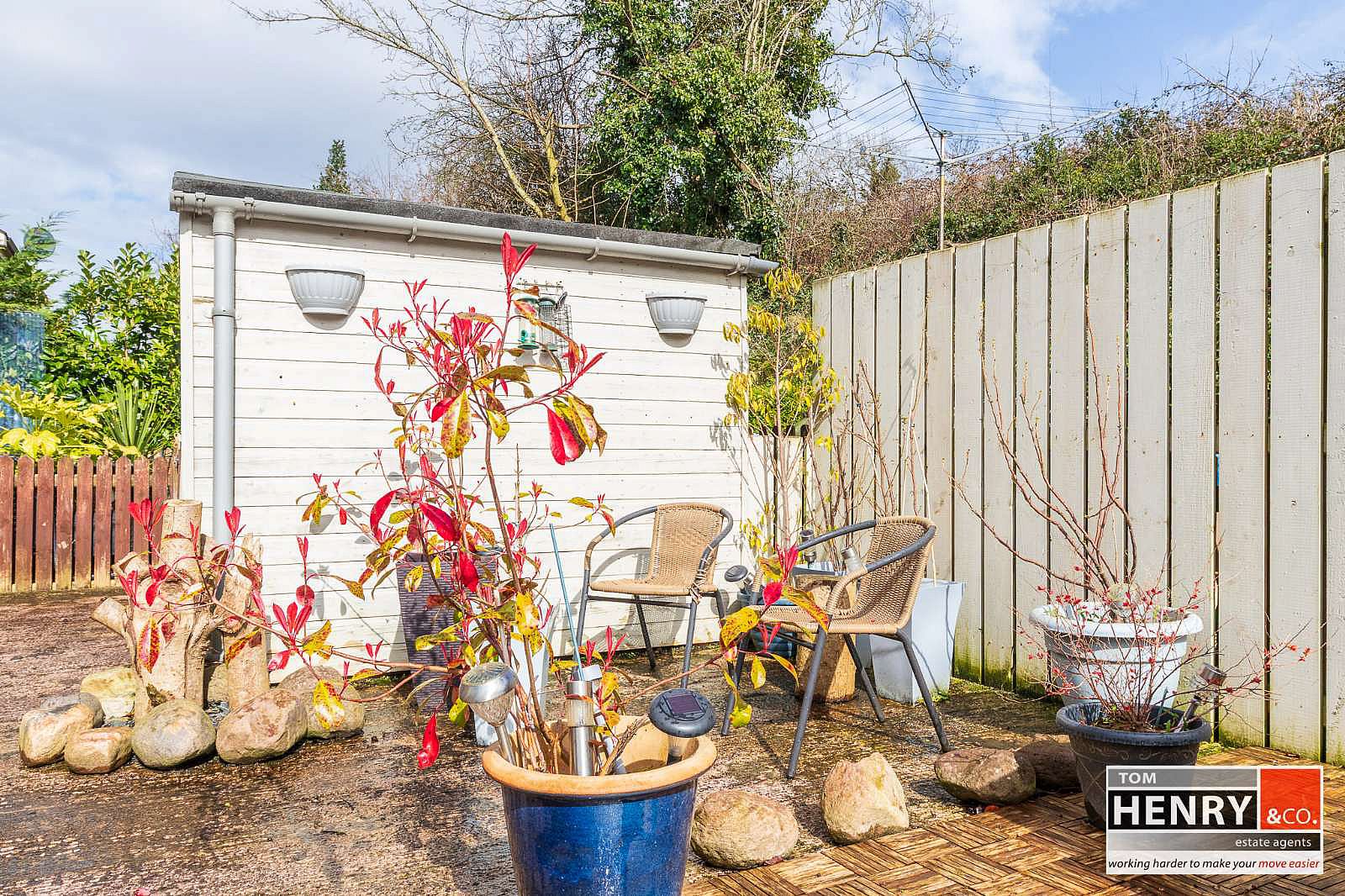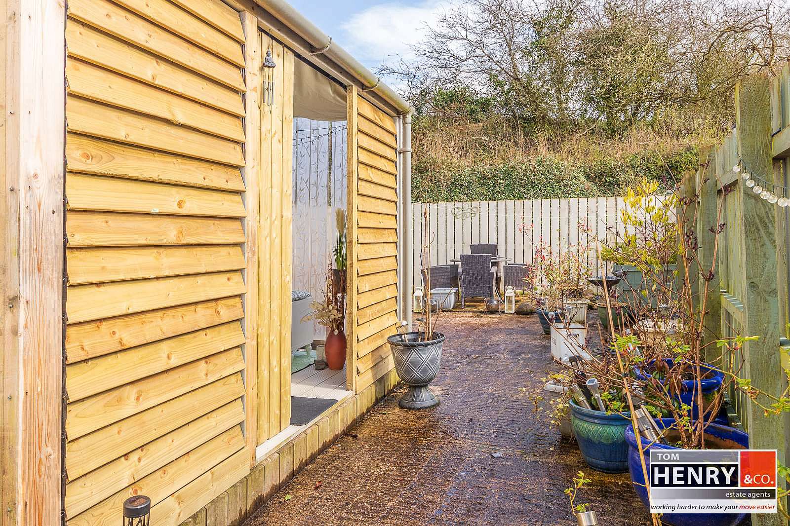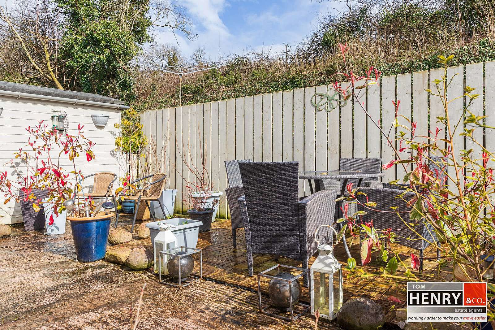 GARDEN TO REAR LAID TO CONCRETE. OUTSIDE WATER TAP. ENCLOSURE FOR OIL TANK & BURNER. GARDEN SHED.