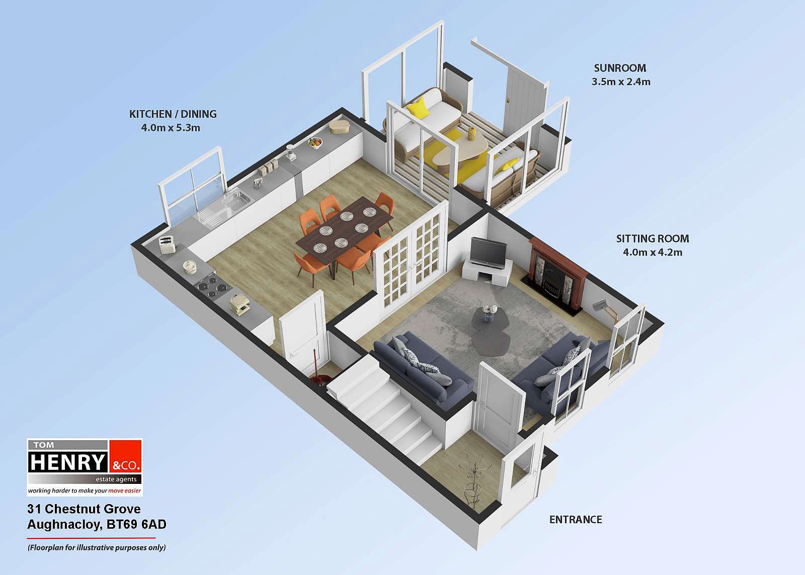 Tom Henry & Company Limited gives notice to anyone who may read these particulars as follows. These particulars do not constitute any part of an offer or contract. Any intending purchasers or lessees must satisfy themselves by inspection or otherwise to the correctness of each of the statements contained in these particulars. We cannot guarantee the accuracy or description of any dimensions, texts or photos which also may be taken by a wide camera lens or enhanced by photo shop. Dimensions may taken to the nearest 0.5m / 0.25 acres. Descriptions of the property are inevitably subjective and the descriptions contained herein are given in good faith as an opinion and not by way of statement of fact. Tom Henry & Co. have not tested any equipment, apparatus, fittings or services and cannot verify that these are in working order and do not offer any guarantees on their condition.