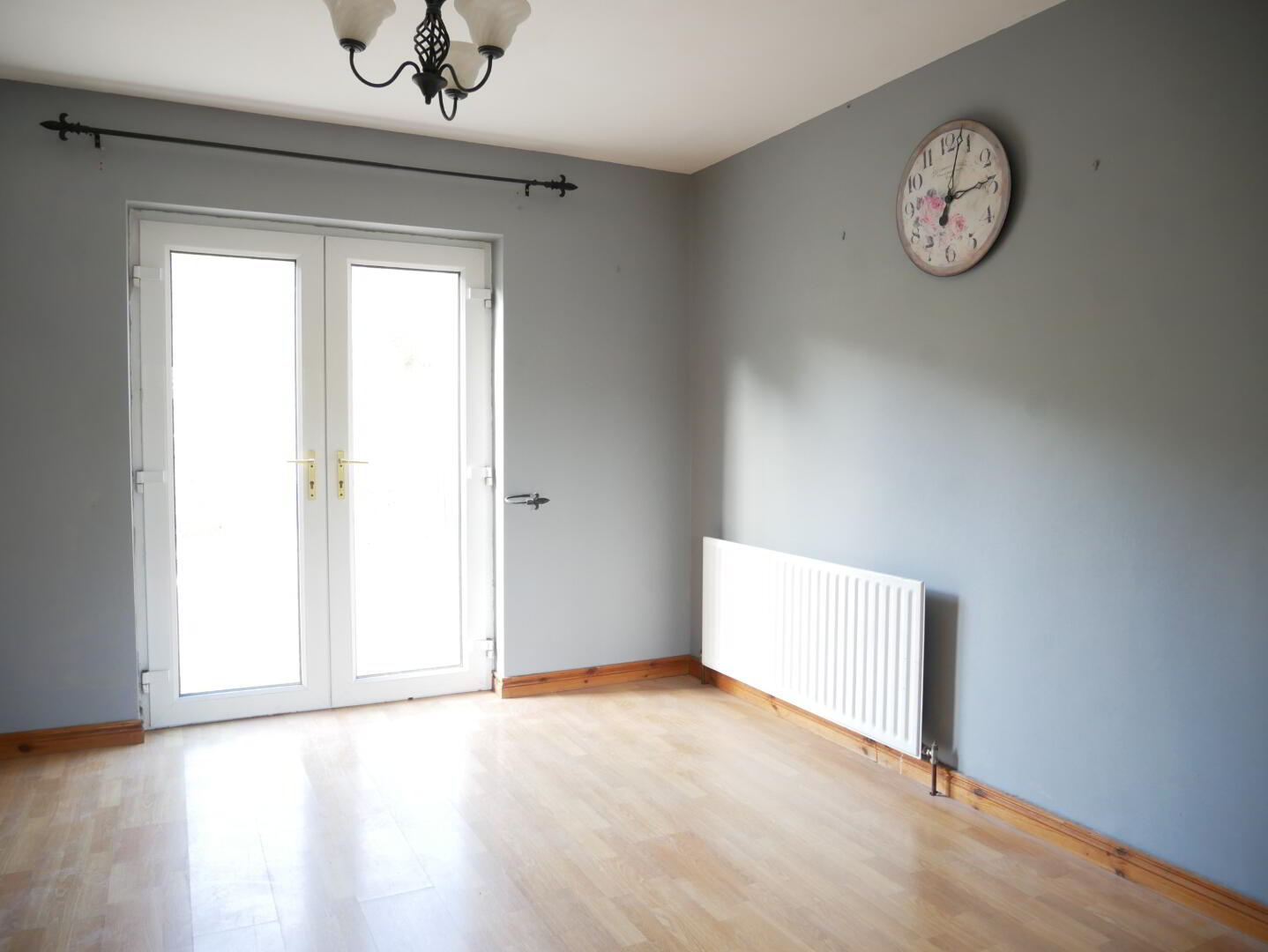Dining Room: 11'4" x 10'9" Glazed PVC French doors to rear. Laminate wood flooring.