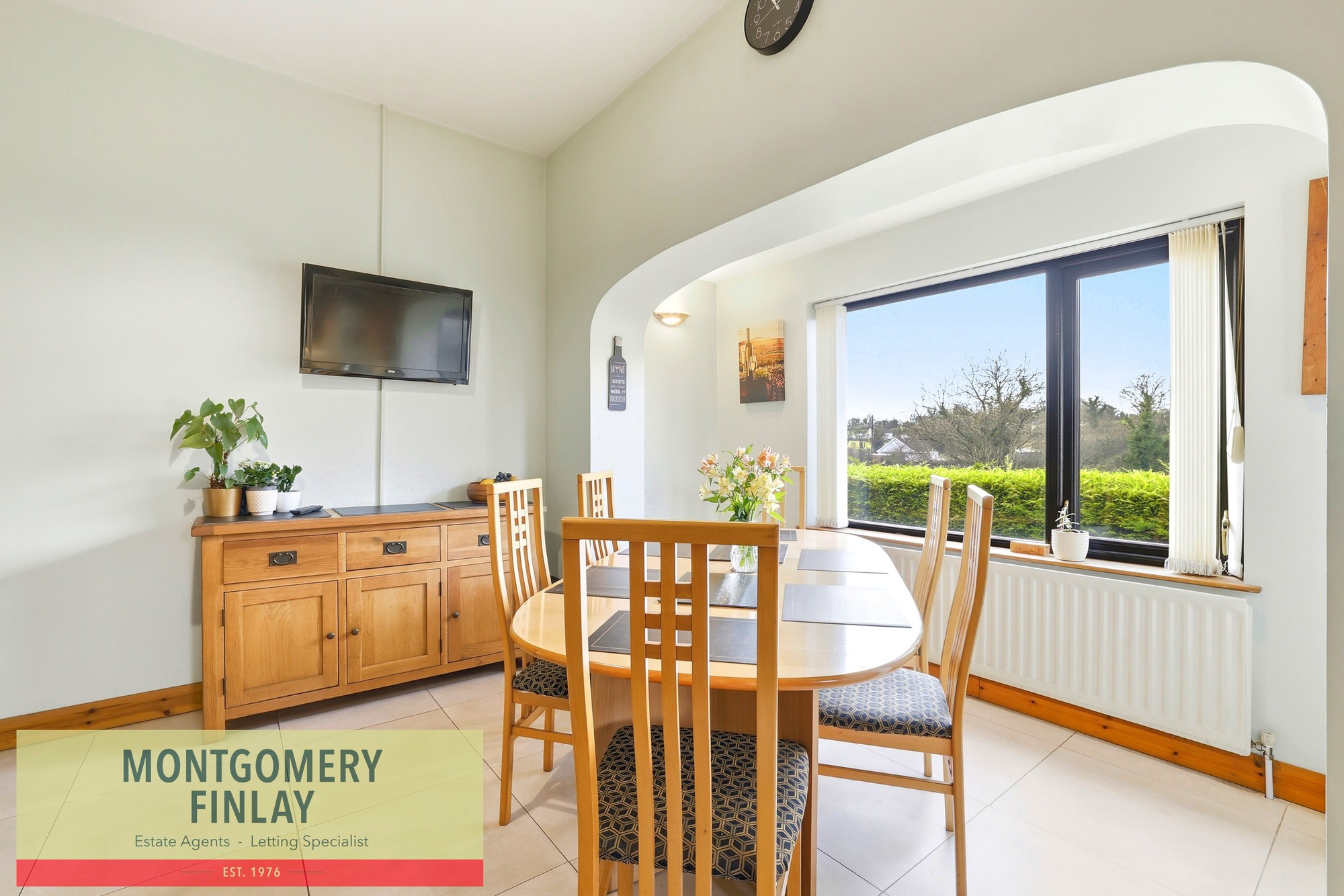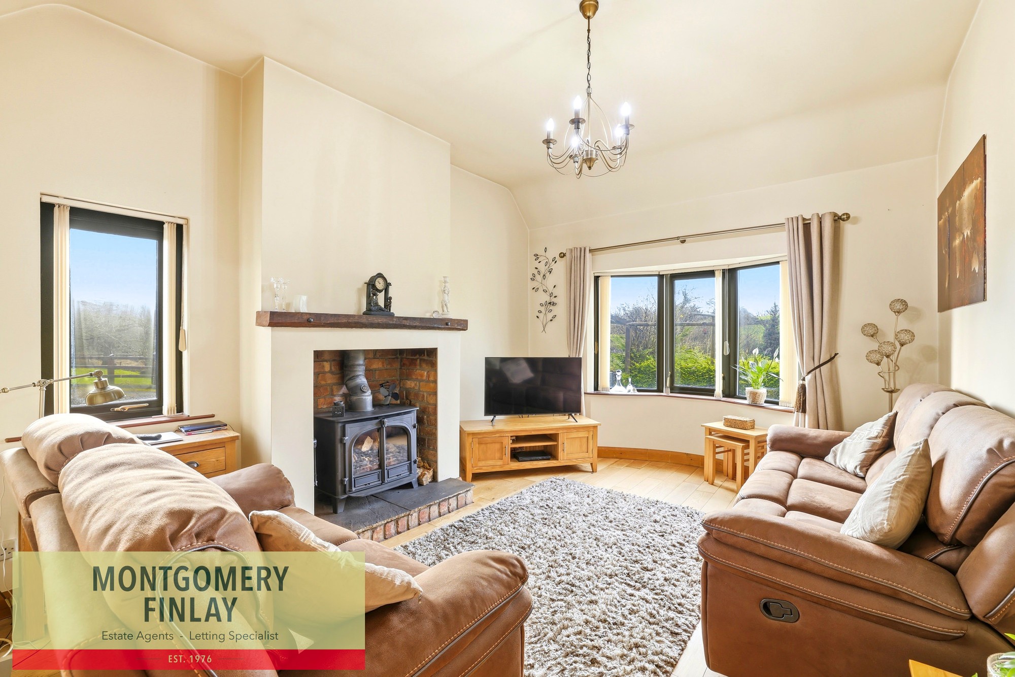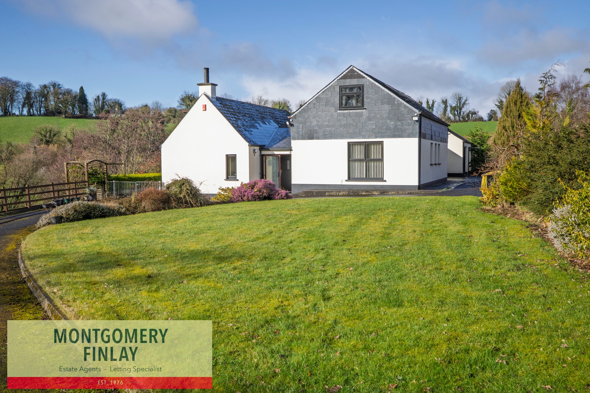 This beautifully presented three-bedroom detached residence is set on generous grounds extending to approximately one acre, offering an excellent combination of comfortable family living and valuable outdoor space. The property is well maintained throughout and benefits from spacious, well-proportioned accommodation suited to a variety of purchasers.