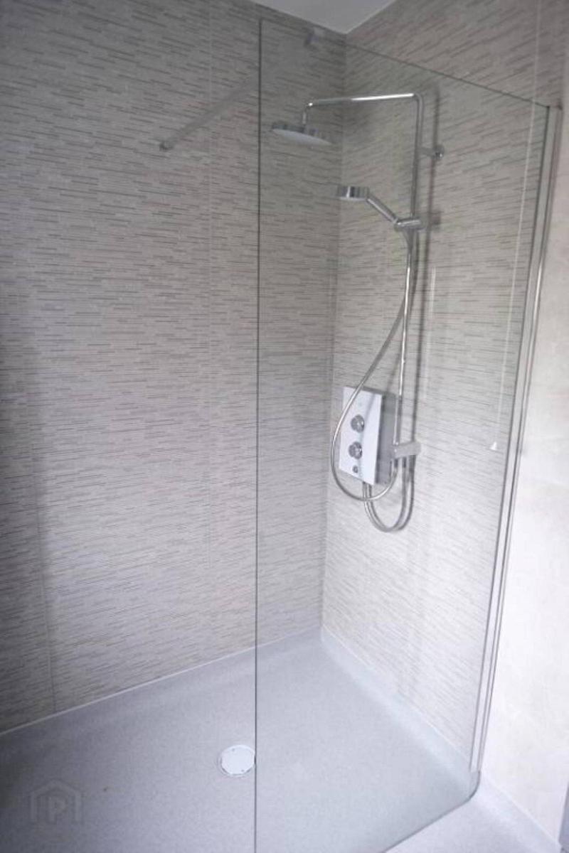 With electric shower, wet room style floor,