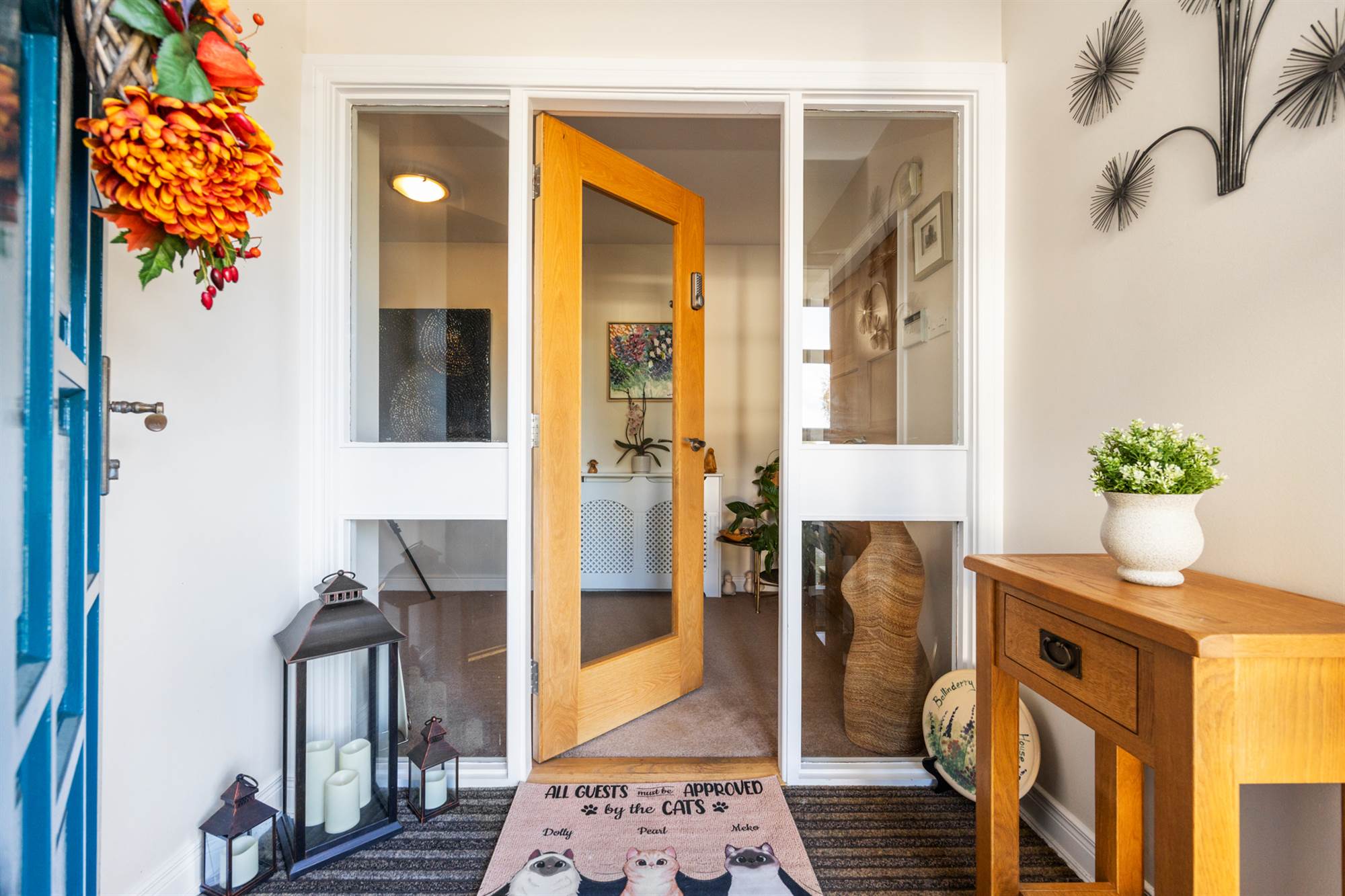 Glazed internal door and side panels to: