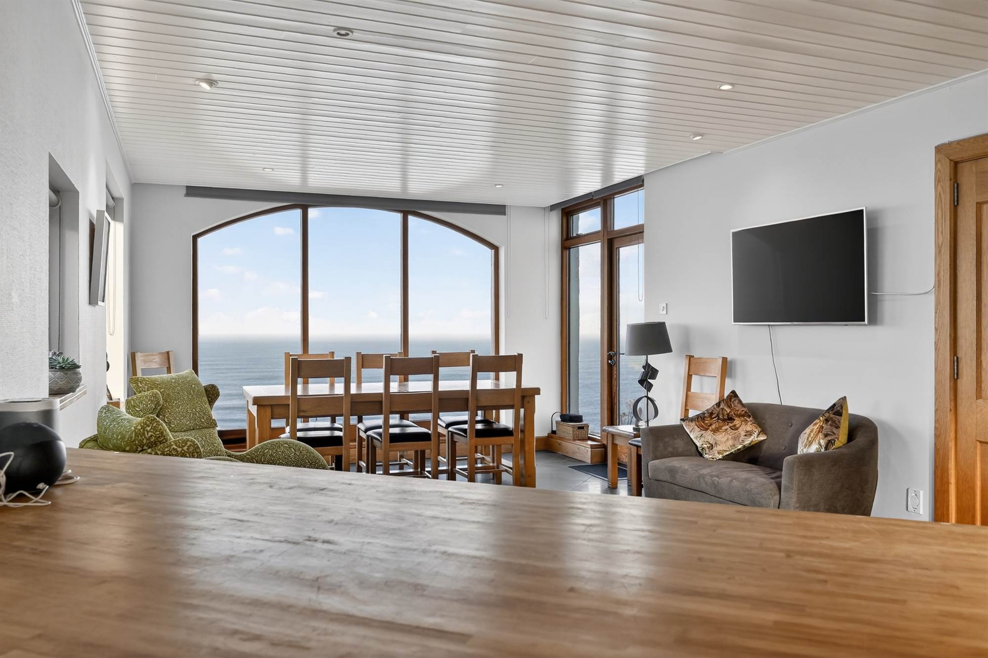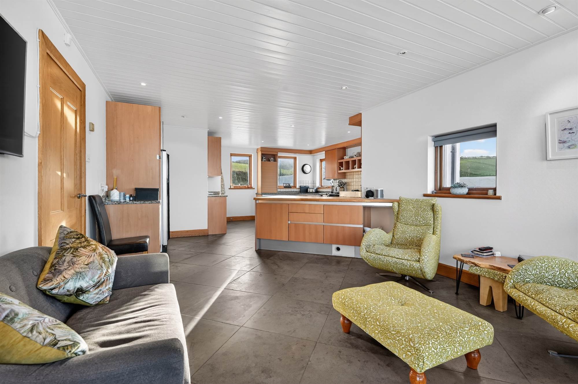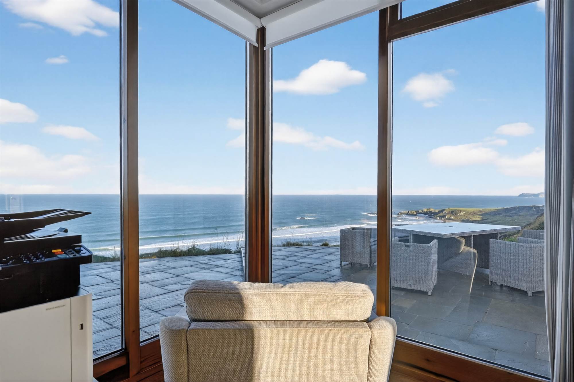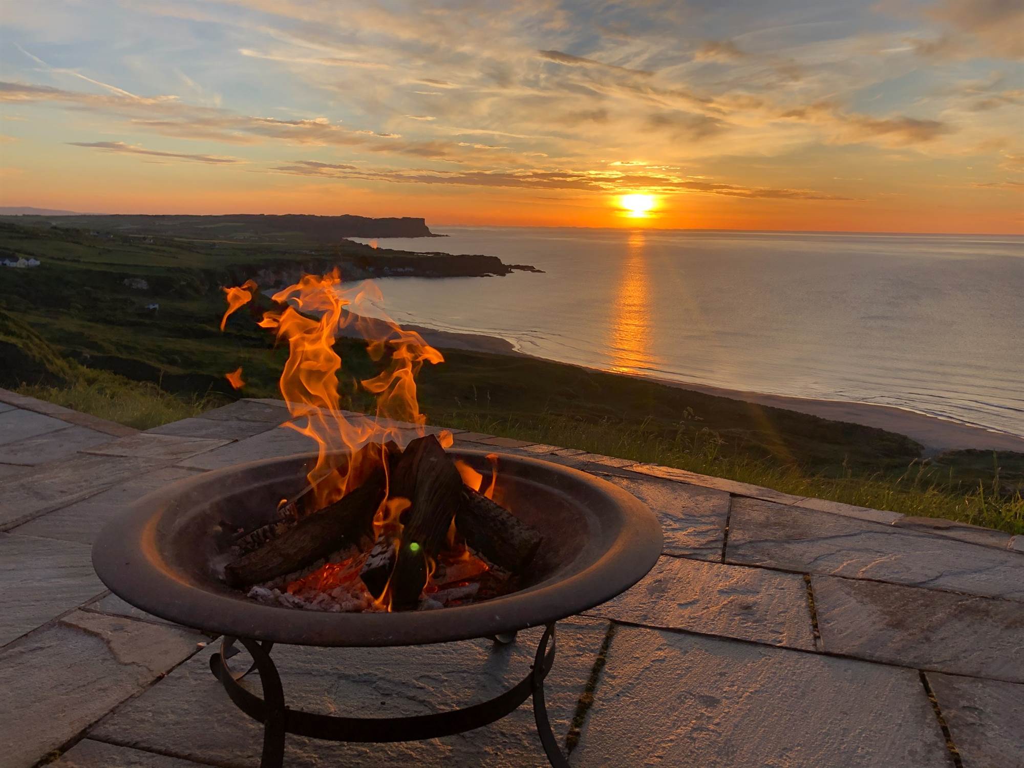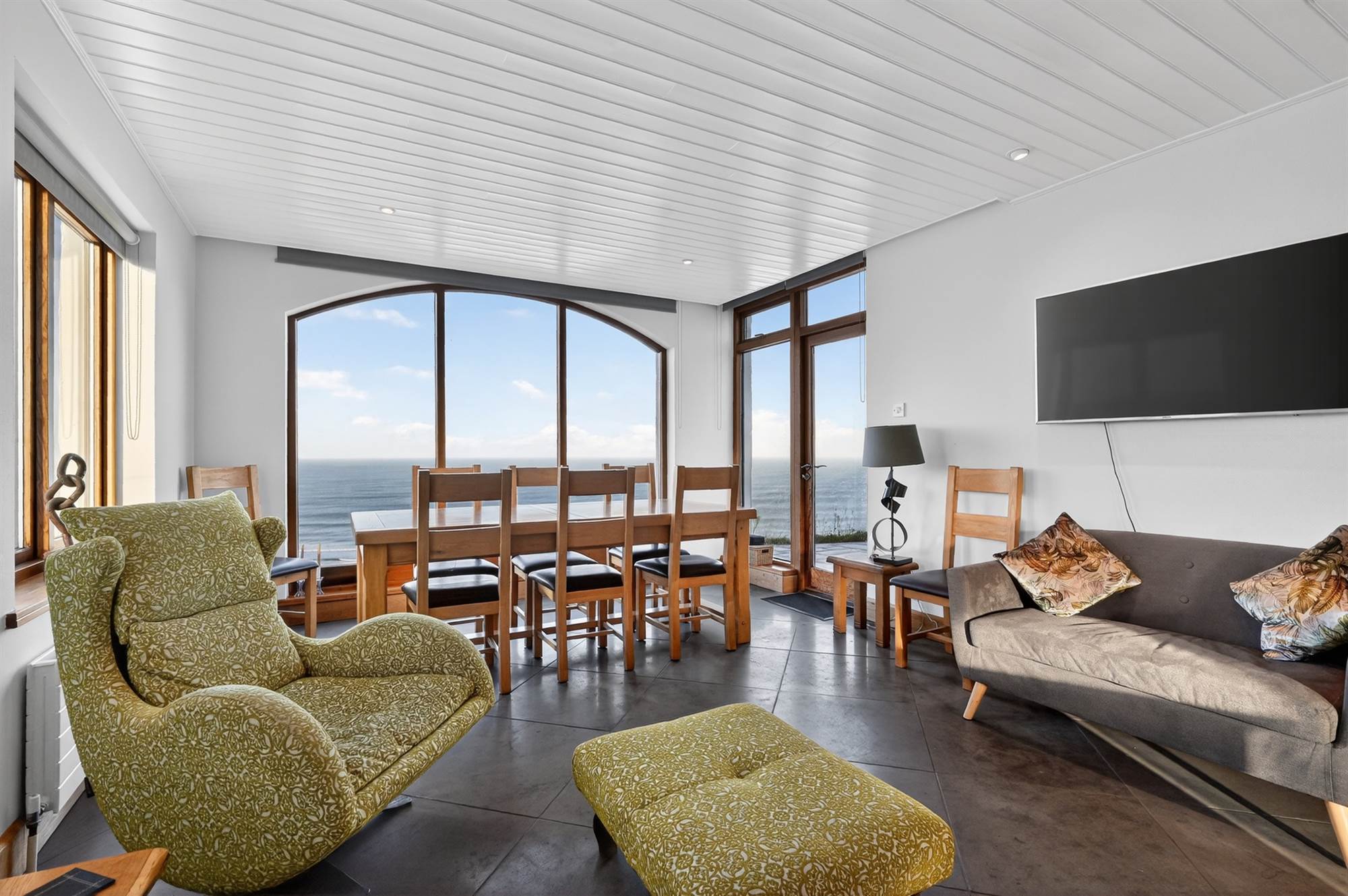 Wall to wall built-in bookshelving and cupboard space, impressive picture windows with 180 degree views over the coastline to the Giant's Causeway and cliff top walk in the west and to Rathlin Islad in the east, recessed low voltage halogen spotlights.