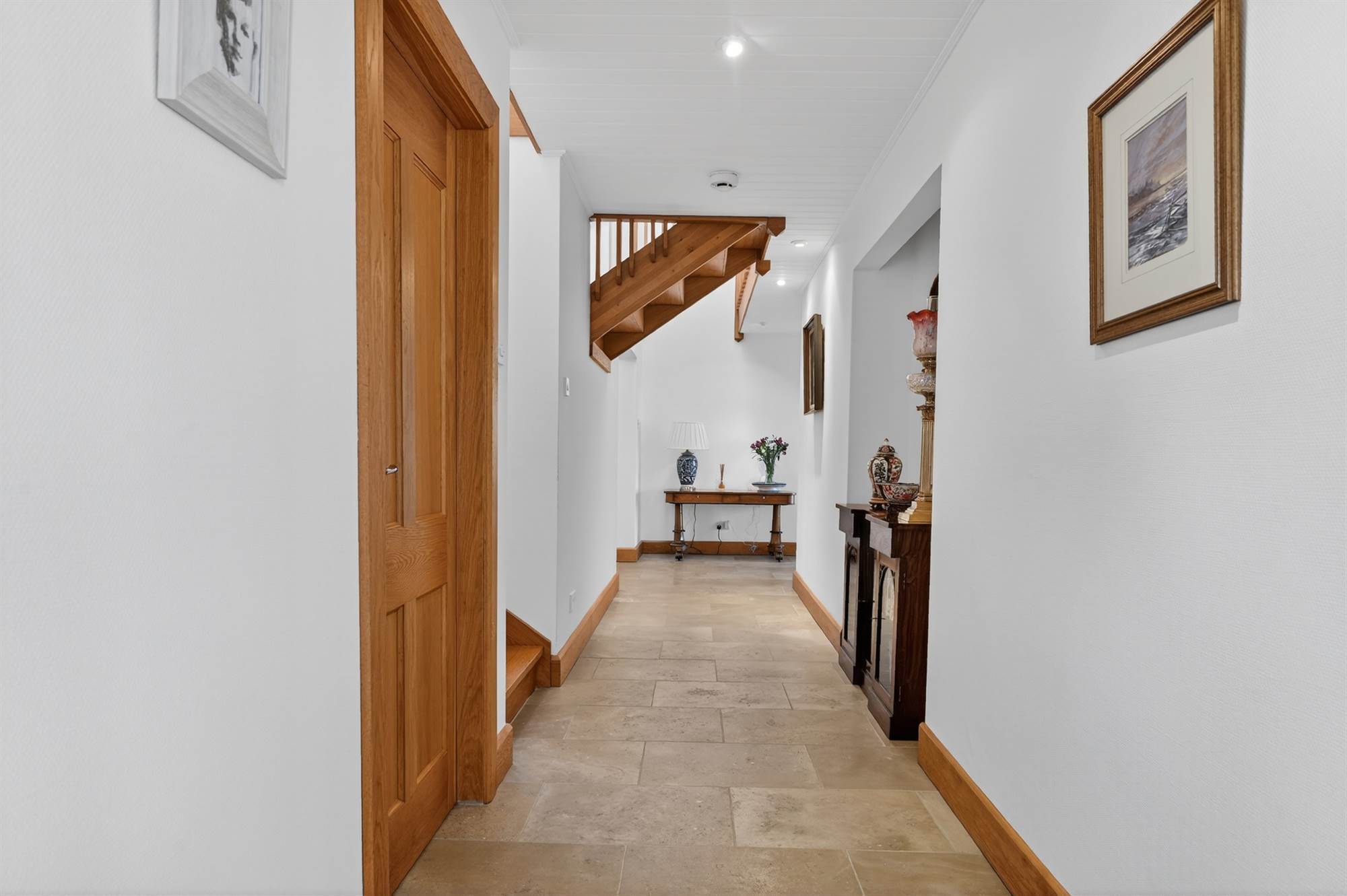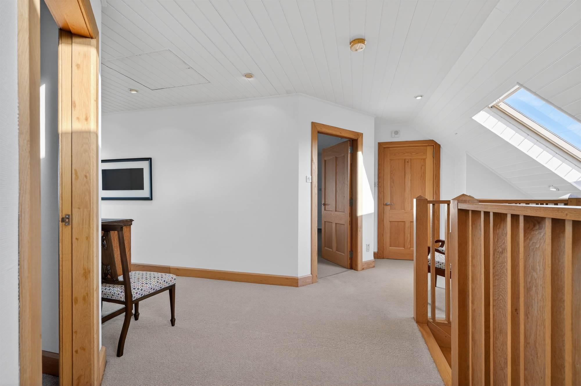 Upstairs are four well proportioned bedrooms, principal with ensuite shower room and walk-in dressing room, a luxury family bathroom, oil fired central heating and double garage to the outside.