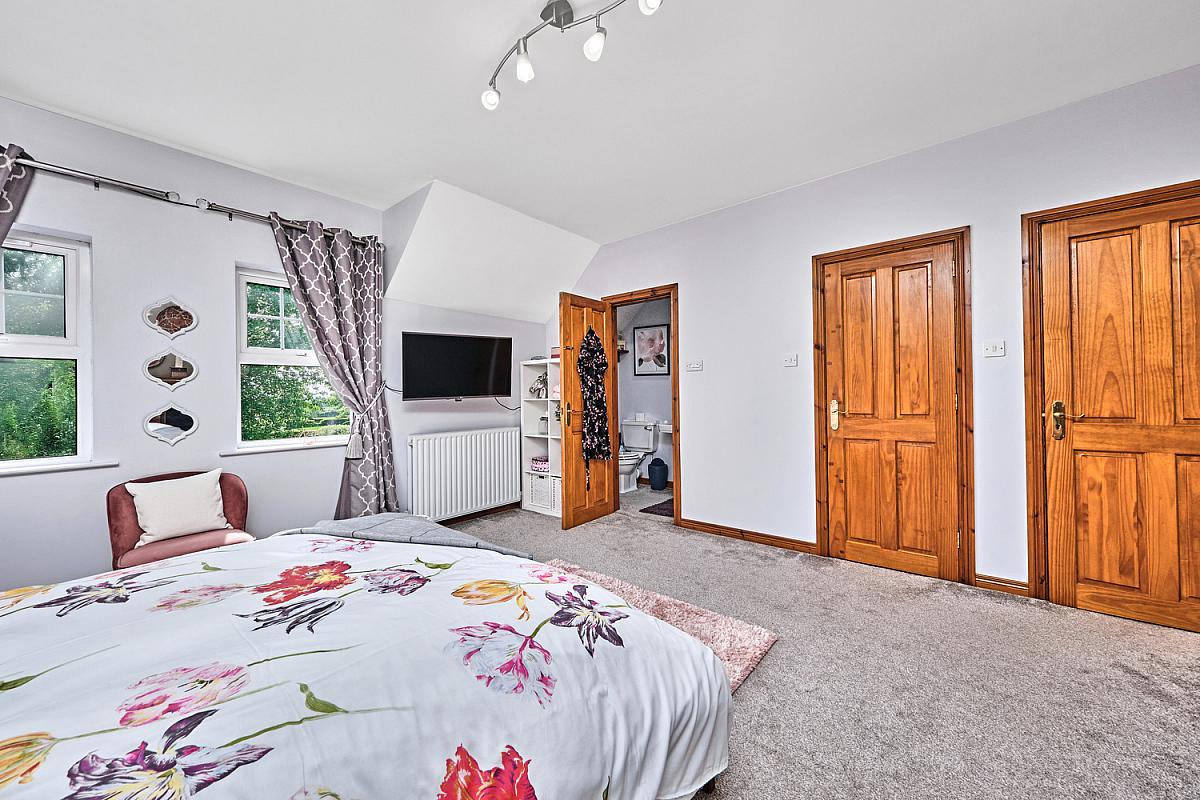 Ensuite off with w.c., wash hand basin, walk in shower cubicle with power shower, shaver point and light and extractor fan.