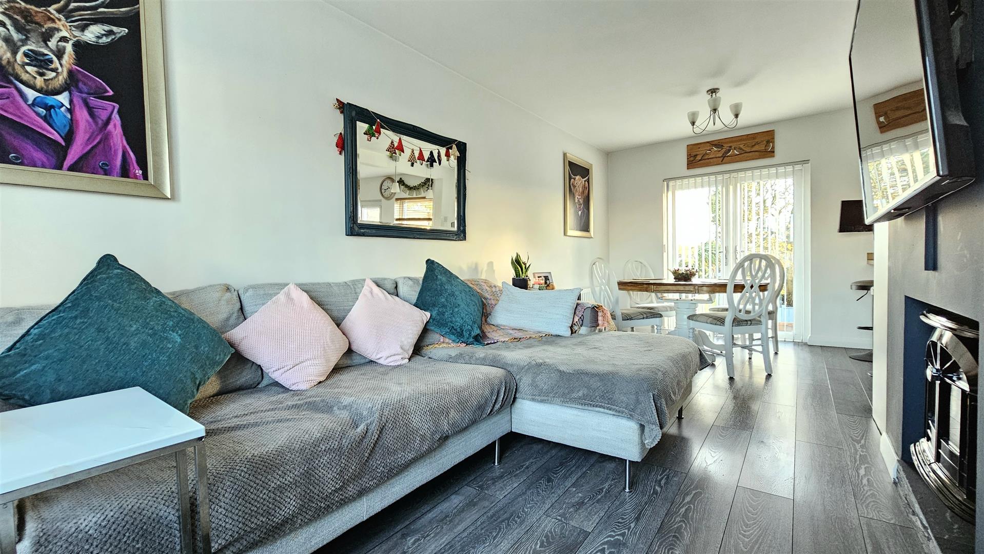 Lounge diner open plan to kitchen with laminate wood flooring