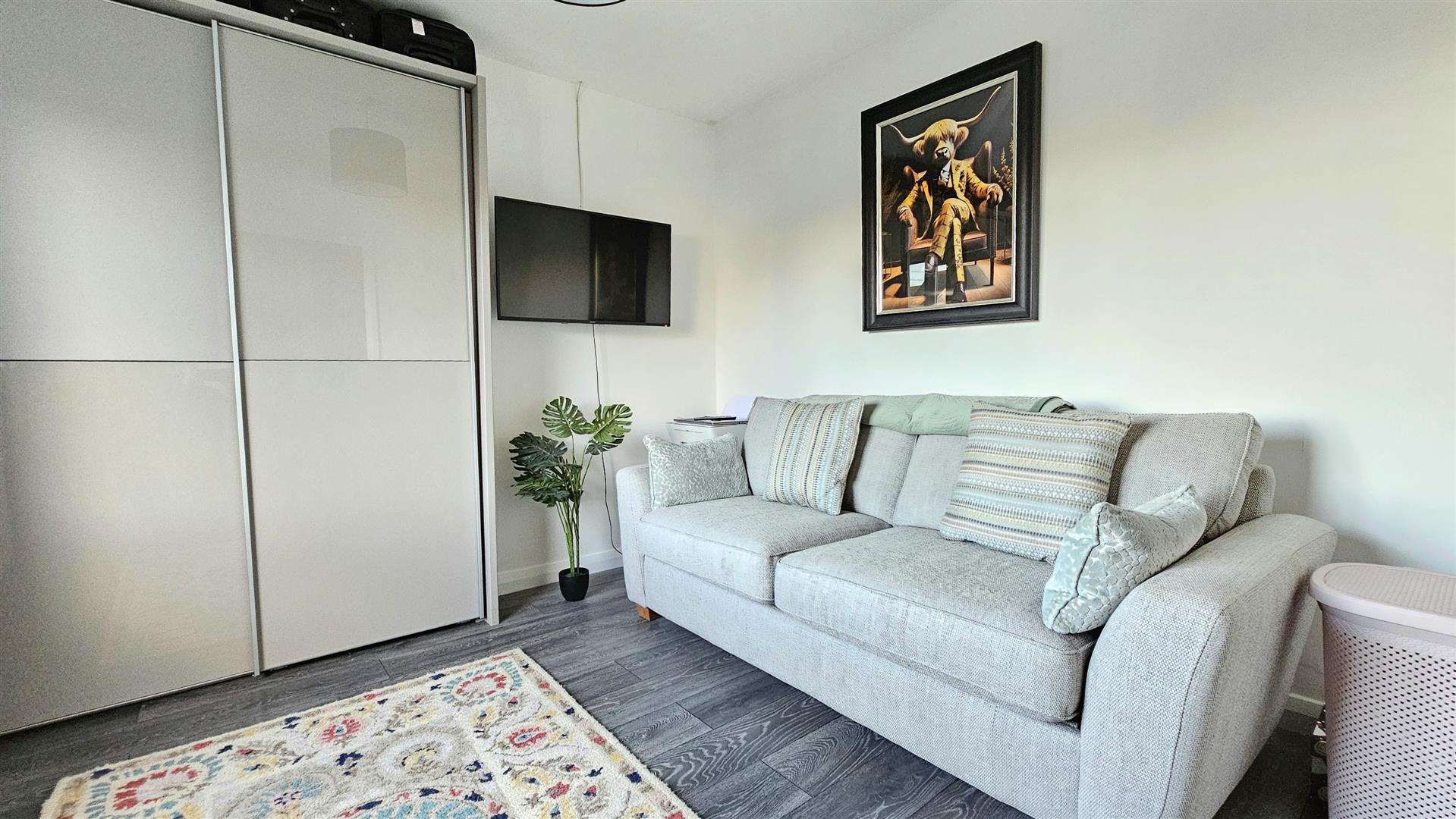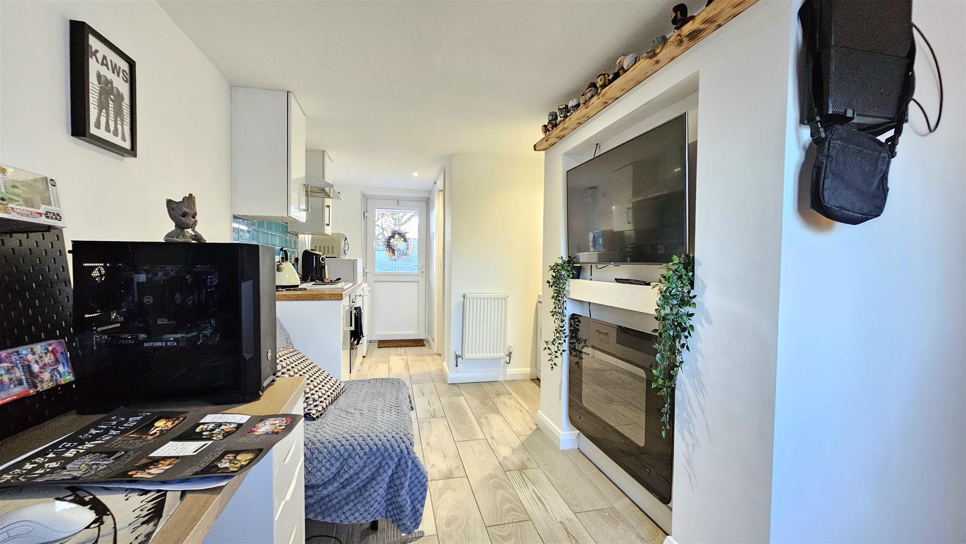 The annex provides fully contained ground floor accommodation with its own independent entrance, giving it excellent potential for varied usage. It includes a lounge open plan to a kitchen fitted with contemporary white high gloss units, along with a separate bathroom and a double bedroom featuring built-in wardrobes. This arrangement offers valuable privacy and independence, enhancing its suitability for extended family living or rental purposes.