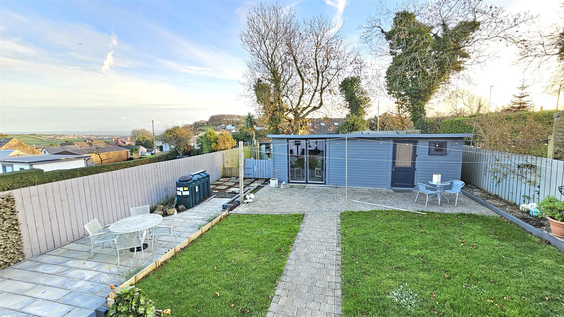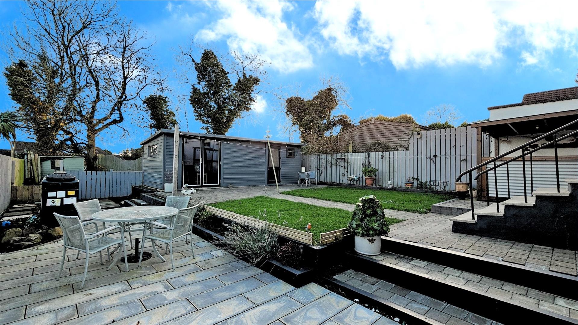 Externally, the property continues to impress with gardens to the rear that are part lawn and part patio, enjoying a pleasant southerly aspect. A covered outdoor entertainment area and a standalone bar or gym space further add to the appeal, offering additional versatility. At the front, there is off-road parking for three cars.