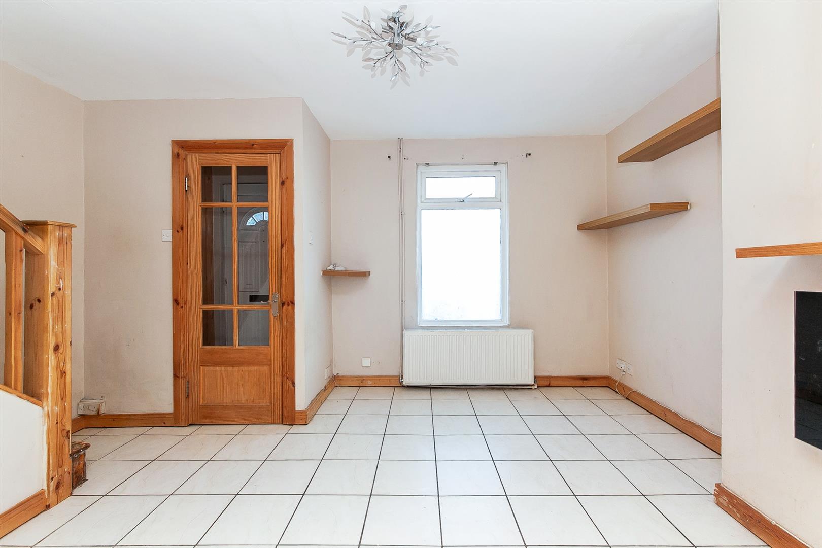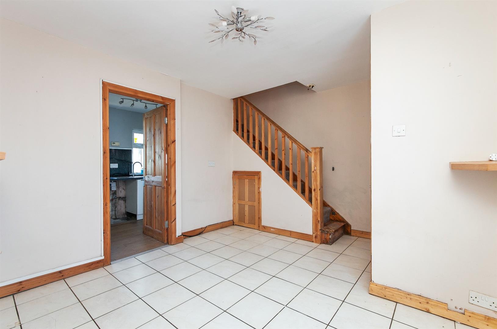 Focal point wall mounted electric fire. Tiled floor. Stairwell to first floor. Access to under stairs store.