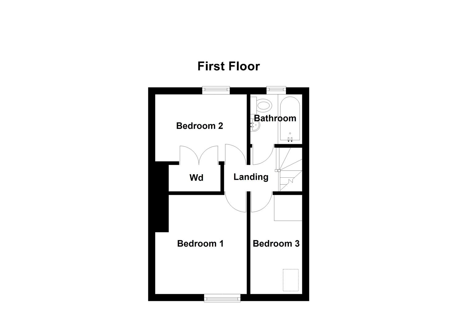 Wood laminate floor covering. Access to roof space.