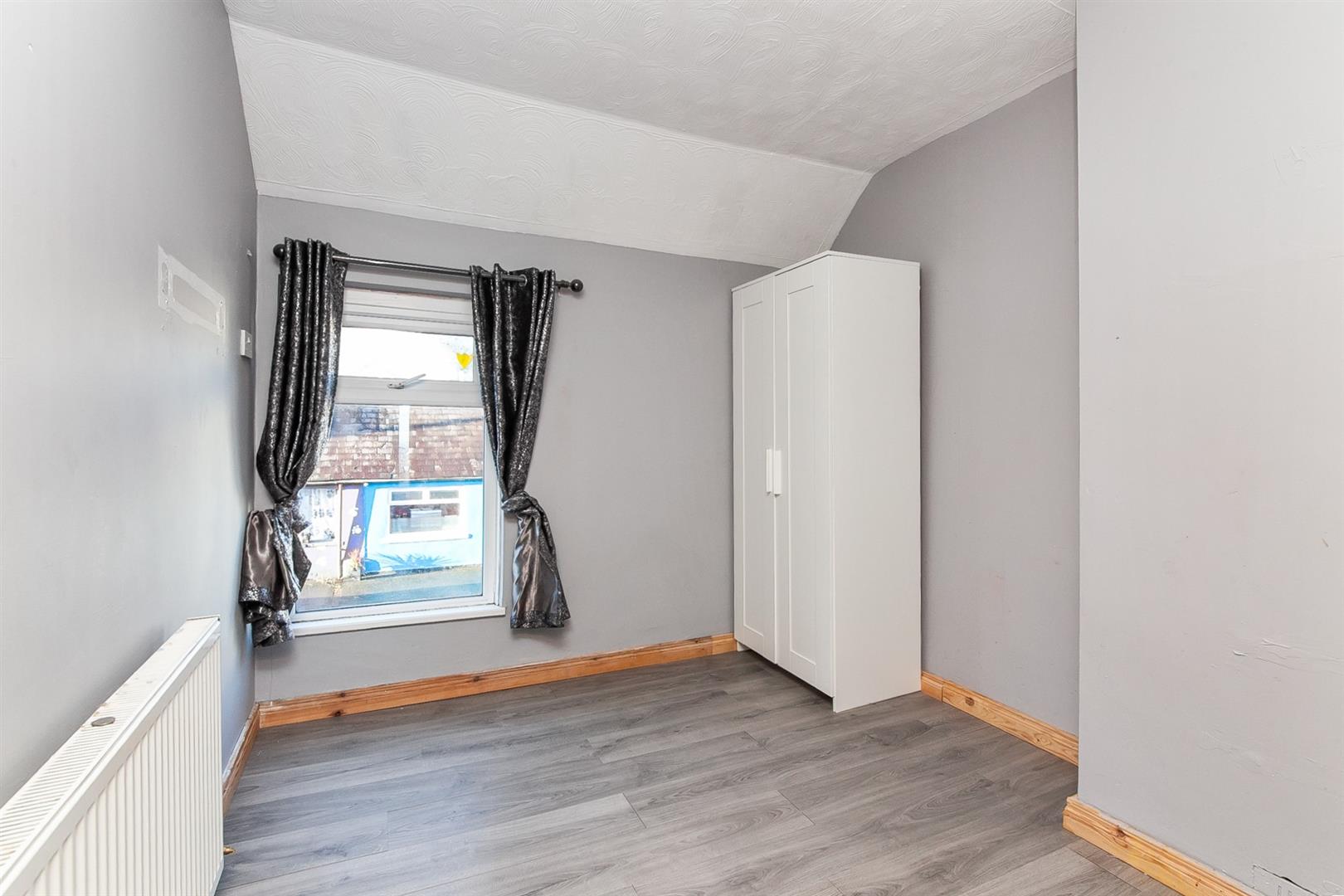 Built in double wardrobe. Wood laminate floor covering. Bay view to rear.