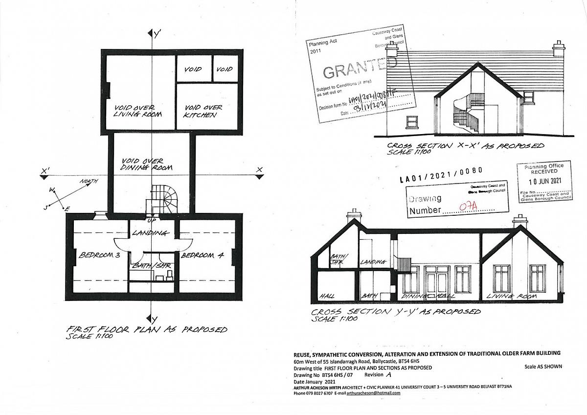 Armstrong Gordon are delighted to offer for sale this approximately 0.25 acre site with full planning permission for conversion and extension to existing stone dwelling . The site offers a pleasant rural aspect with views over surrounding countryside towards Knocklayde mountain . The passed dwelling with plans