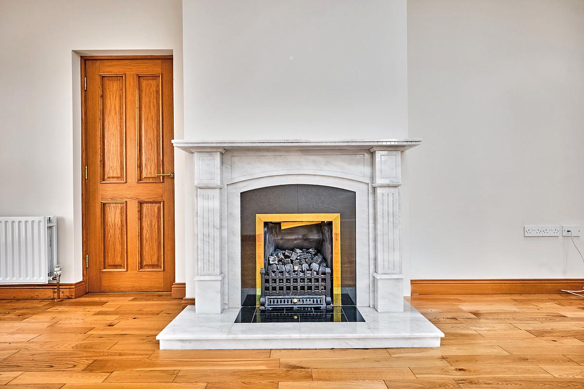 With marble fireplace and hearth, plater coving and cornicing, recessed lighting and solid oak floor.