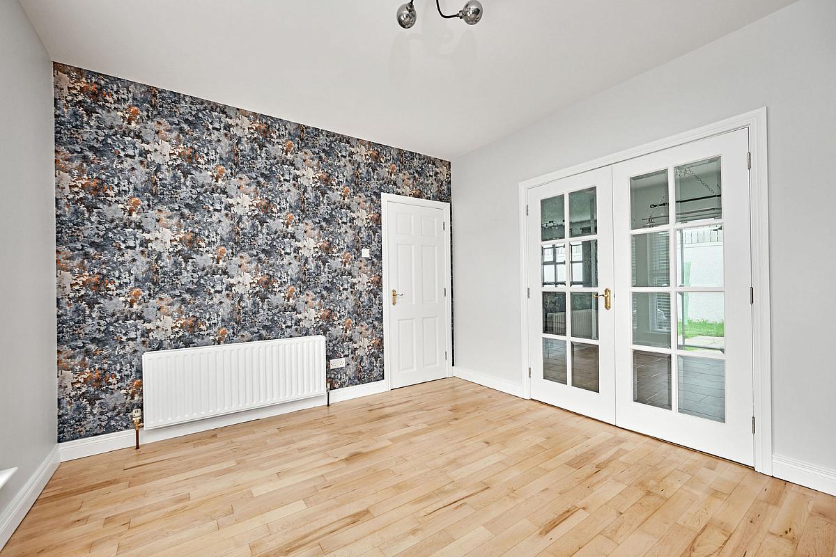 With laminate wood floor. Glazed double doors leading to dining area.
