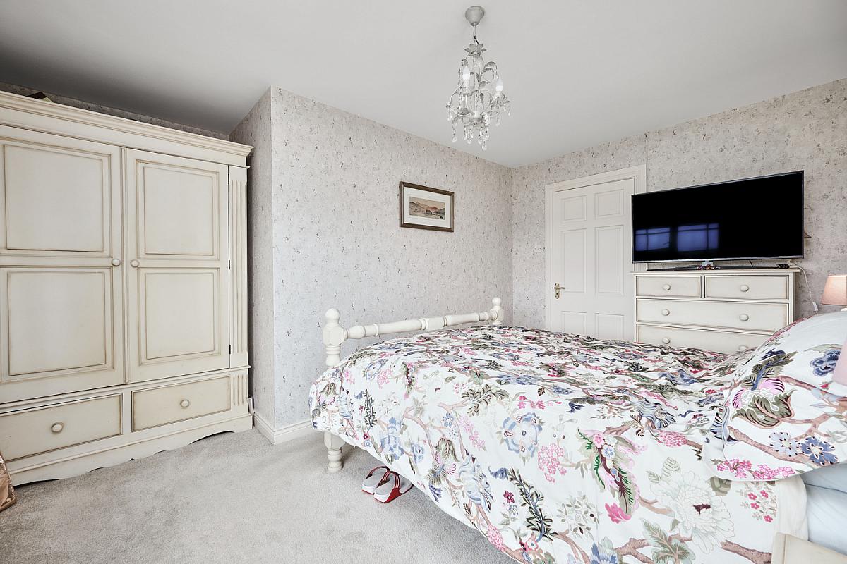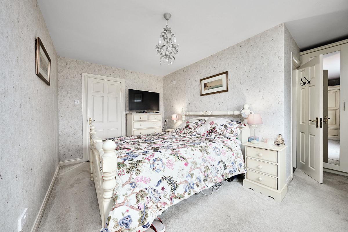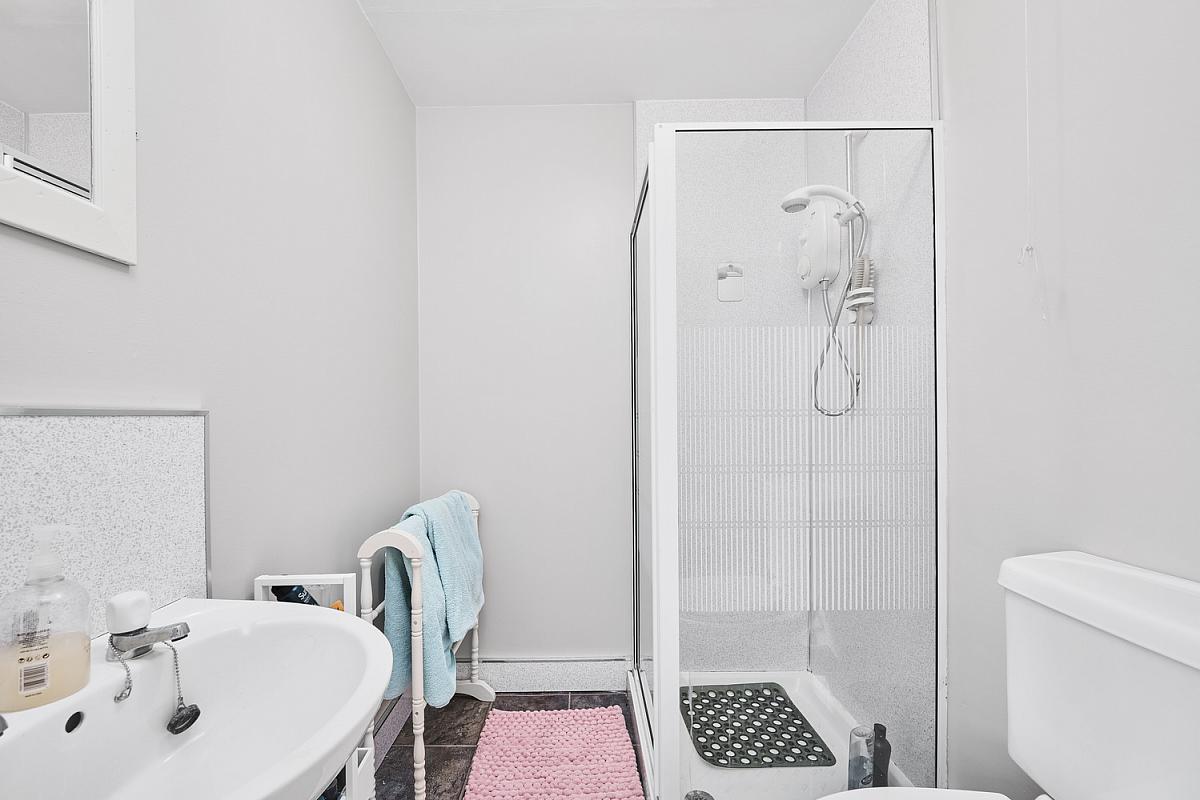 With laminate wood floor, recessed lighting, separate w.c., with wash hand basin, fully tiled walk in shower cubicle, recessed lighting, extractor fan and access to roof space.