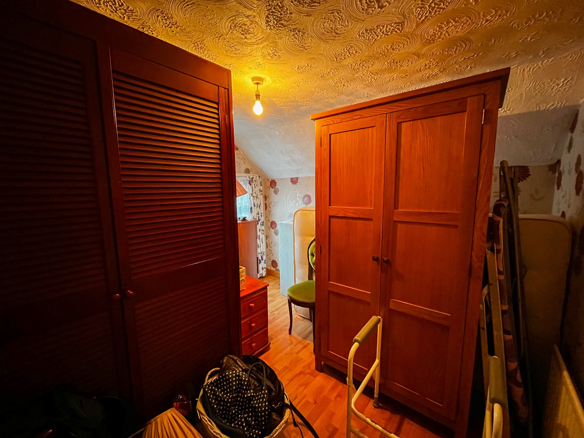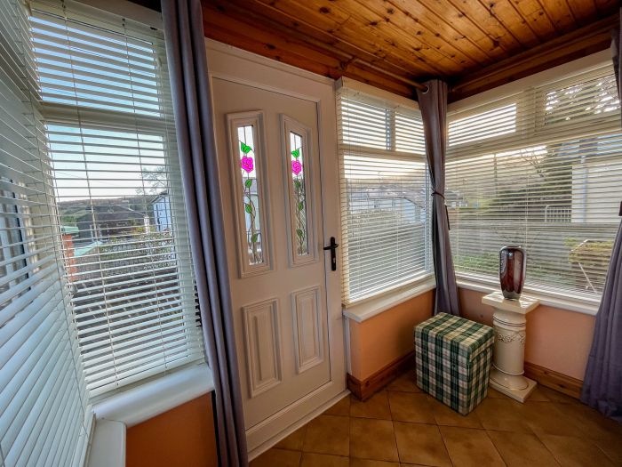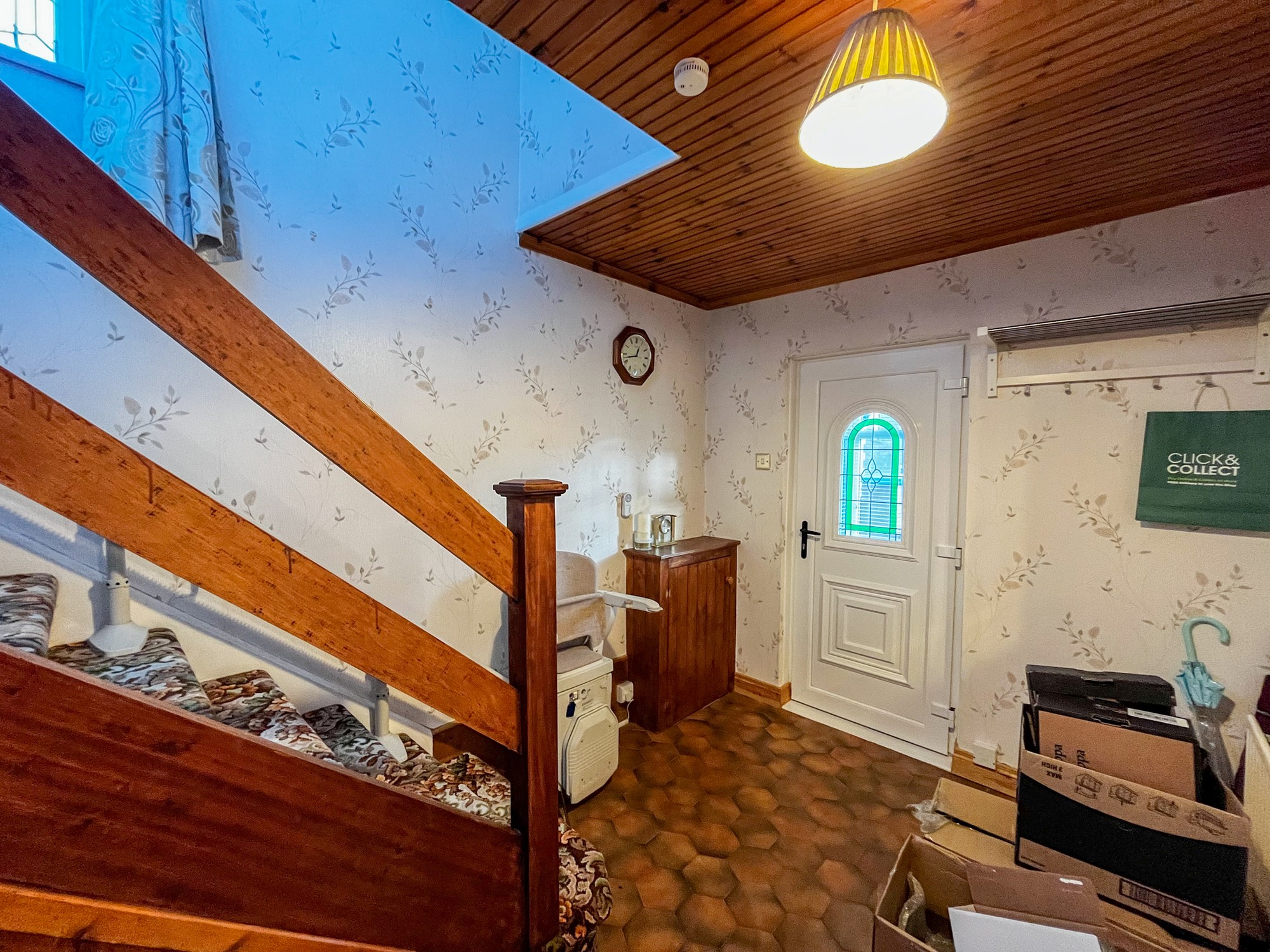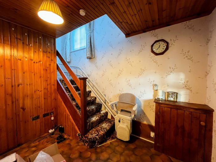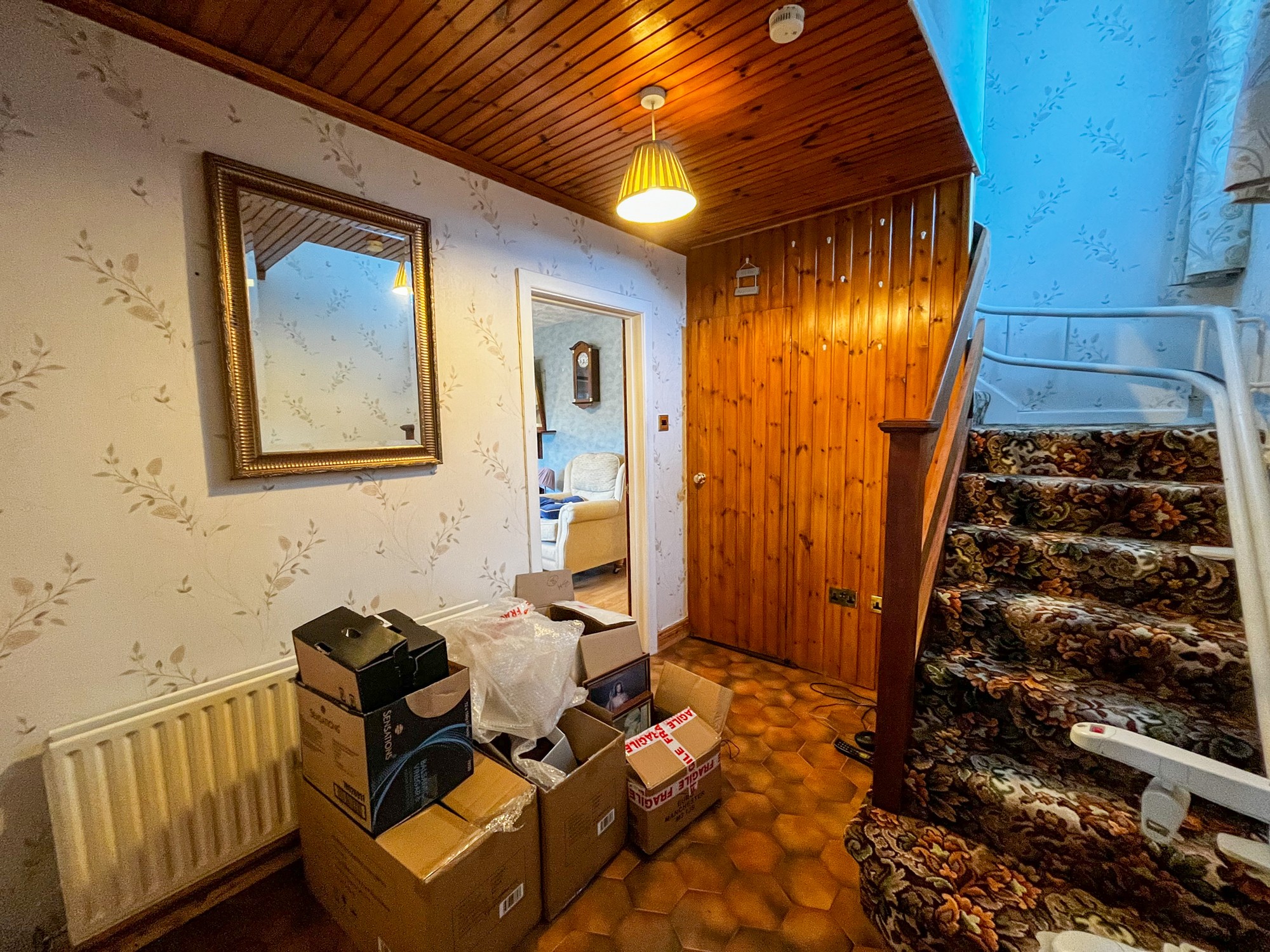 With tiled flooring, under stairs storage cupboard and sheeted ceilings.