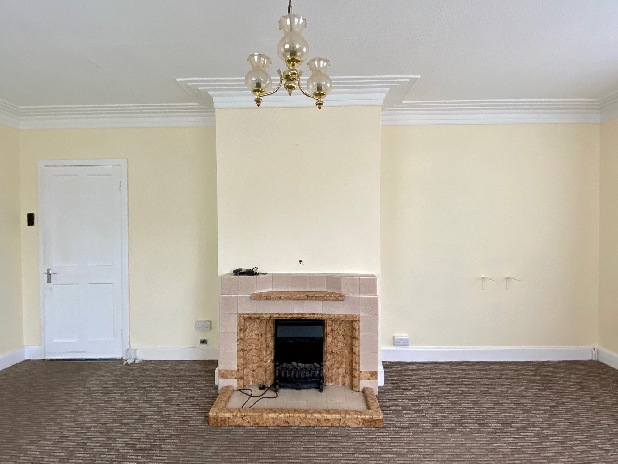 With tiled fireplace and hearth, points for walls lights and coved ceiling.