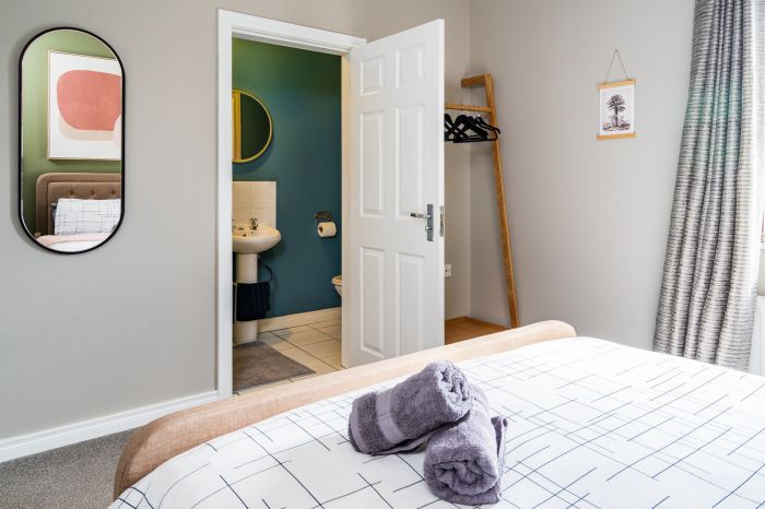 Ensuite facilities including fully tiled shower shower unit with thermostatic shower, WC, wash hand basin, shaver outlet, tiled splashback and tiled flooring.