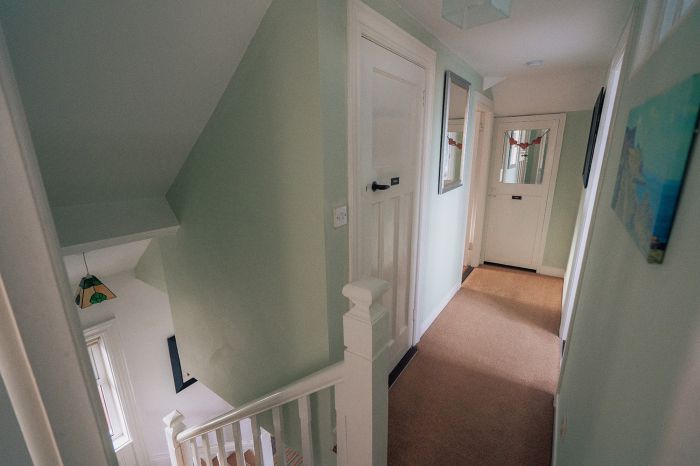 Half Turned Staircase Leading To First Floor Landing With Two Storage Cupboards