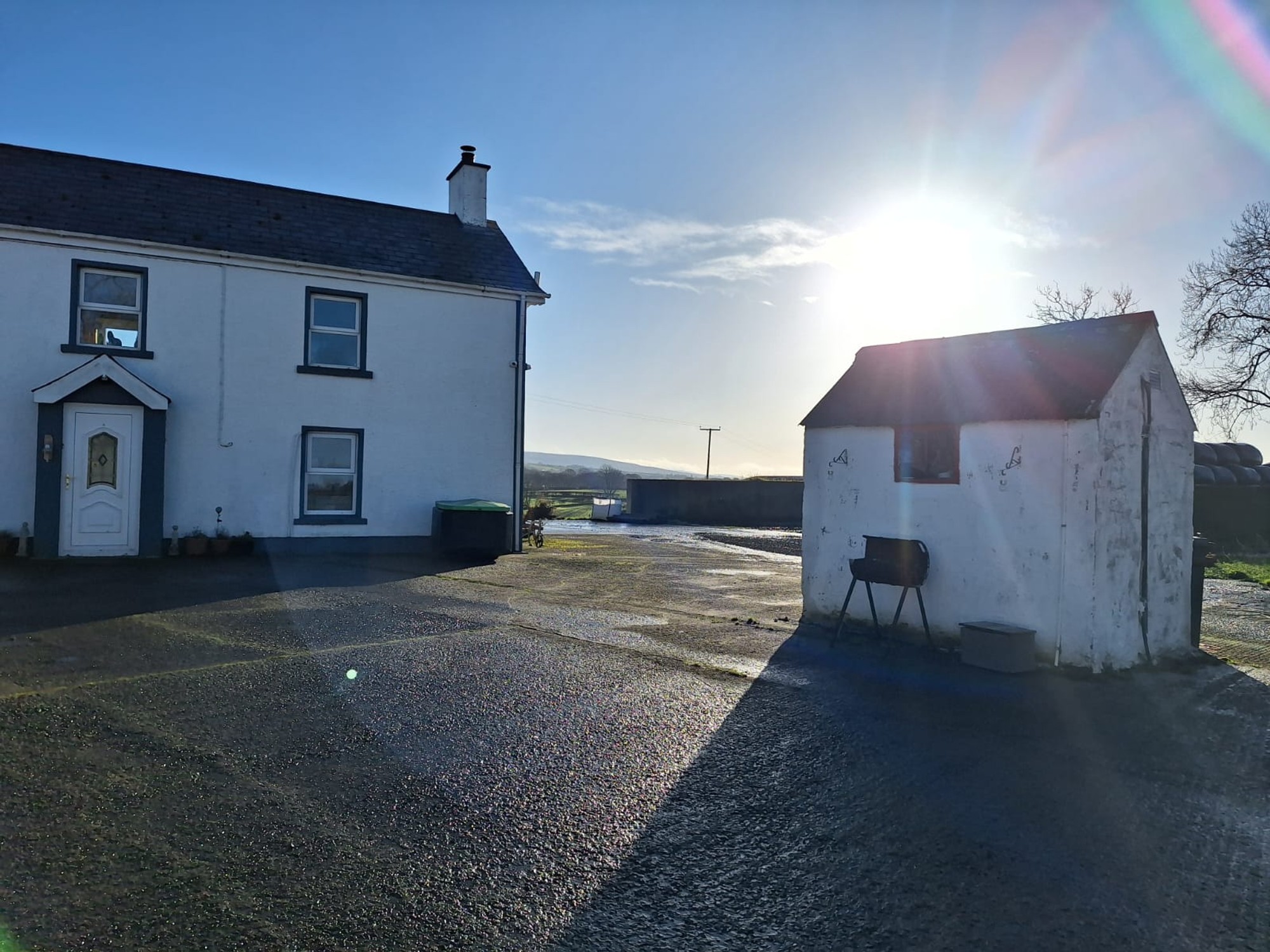 The farmhouse has been recently modernised and extended to include three bedrooms, 2 reception rooms, and a 1 bedroom fully self contained annex/living accommodation, all benefiting from oil fired central heating and Upvc double glazing. The dwelling house, yard, lands and many buildings all benefit from Borehole water supply.