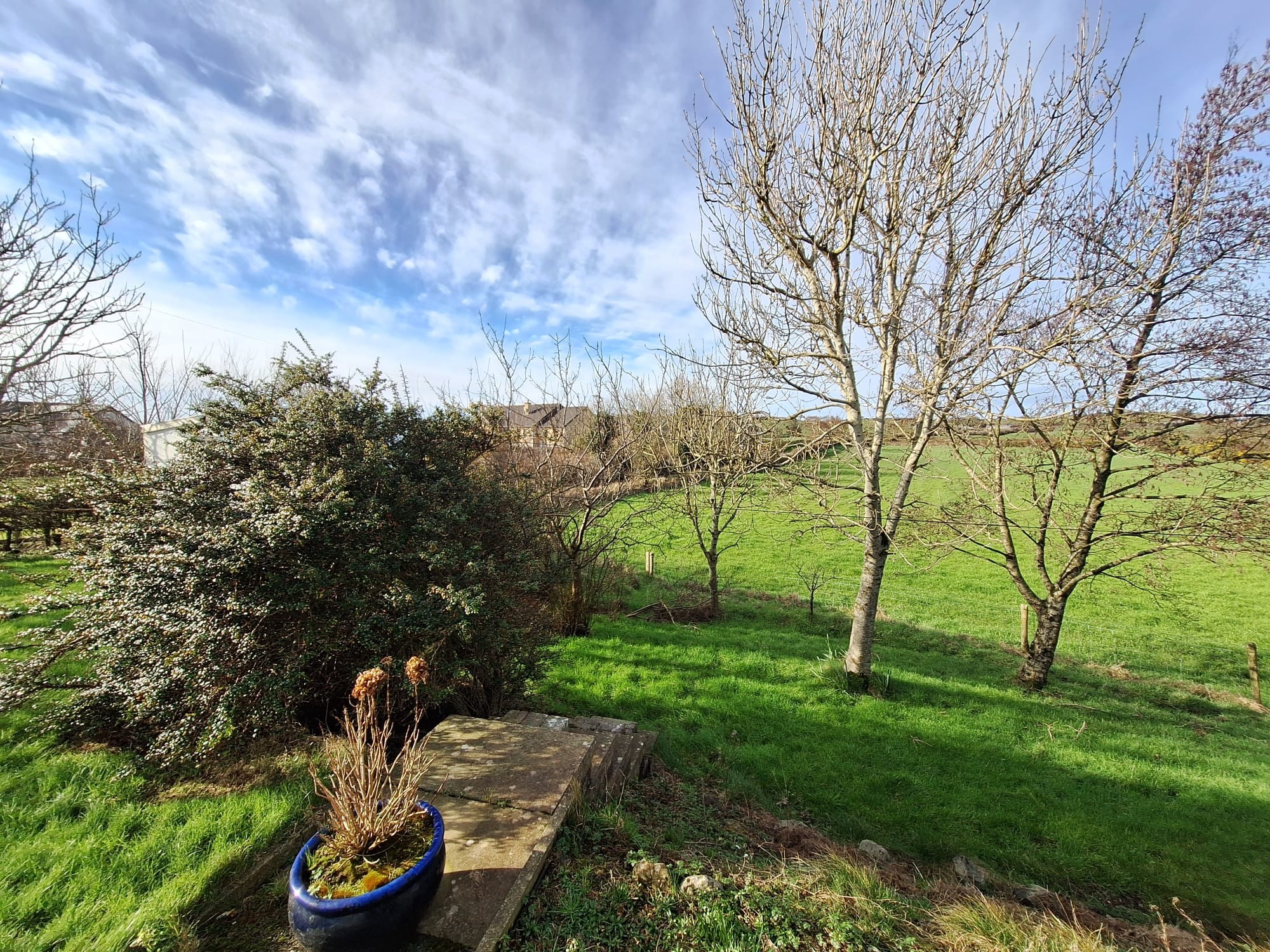 Mature shrubbery and hedging border.
