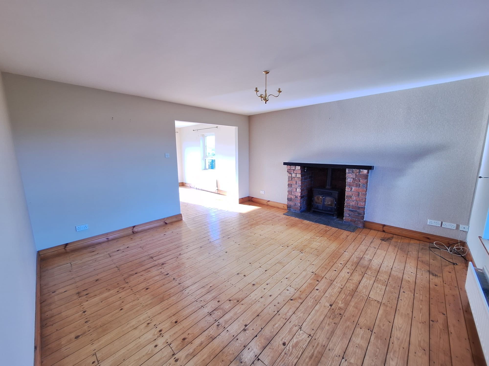 With attractive brick built fireplace, tiled heart, beamed mantle board "Turnberry" solid fuel burning stove, attractive wooden flooring, open plan to dining area.