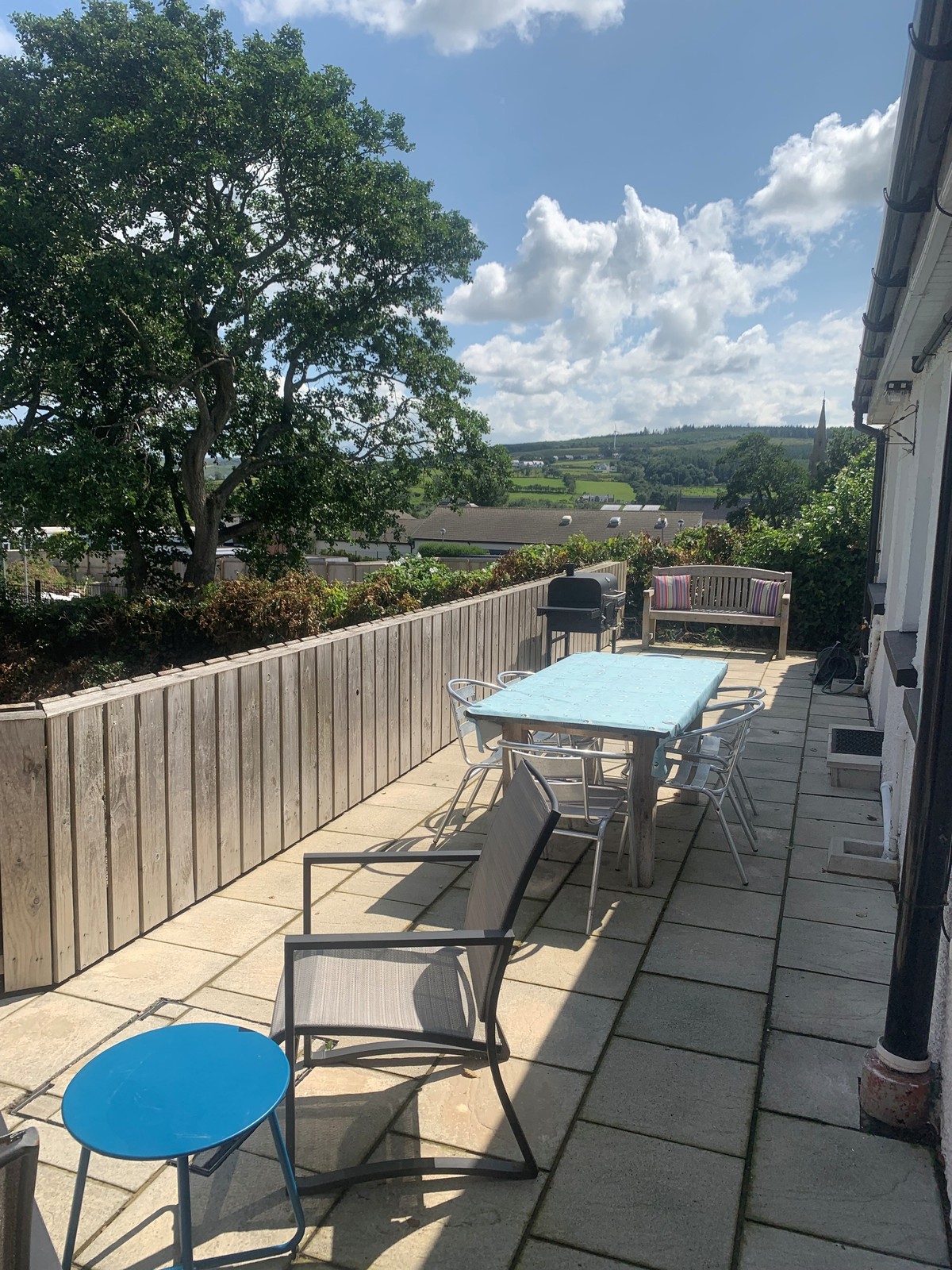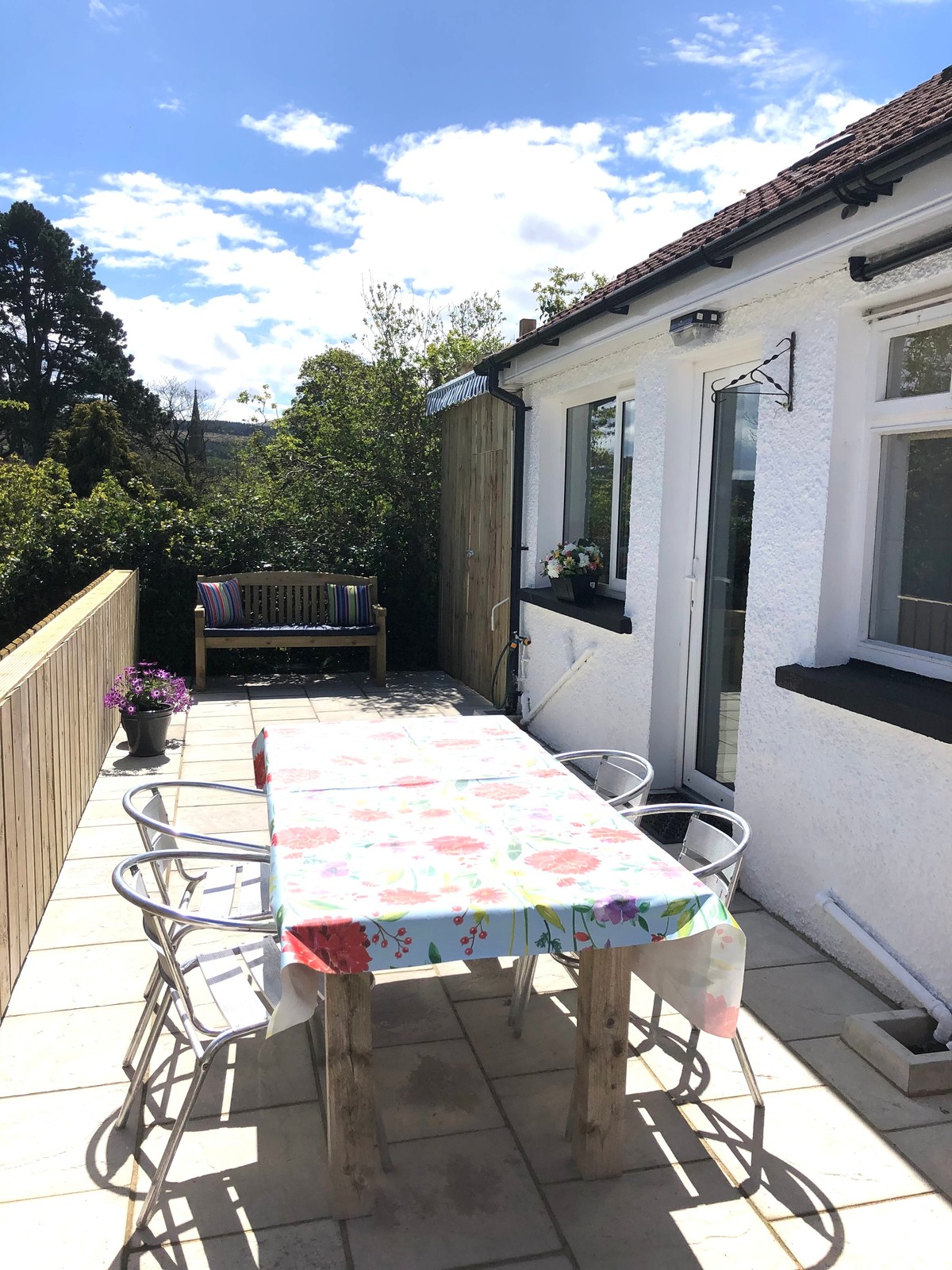 Extensive paved raised patio area offering views to the rear towards Fairhead.