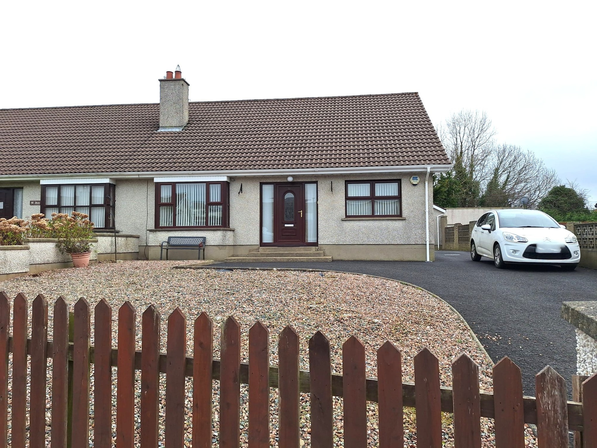 Colour stoned garden area to the front wall and fence enclosed.