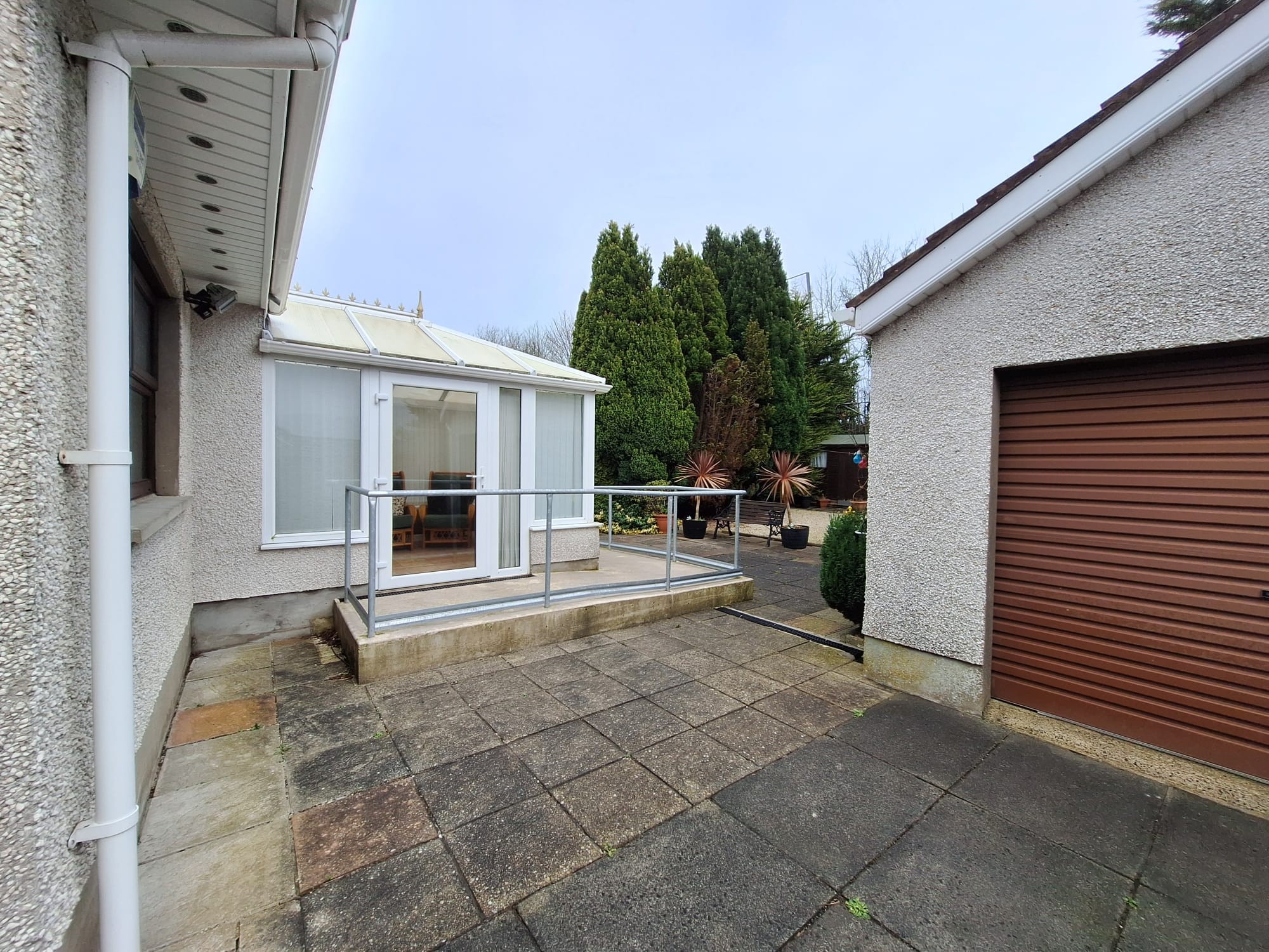 Extensive flagged patio area to the rear.