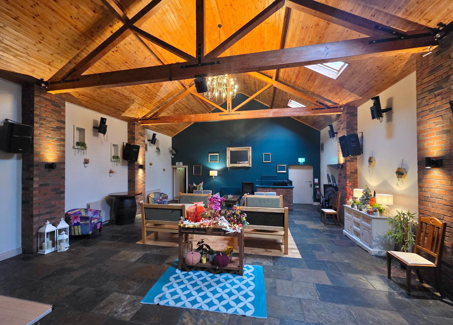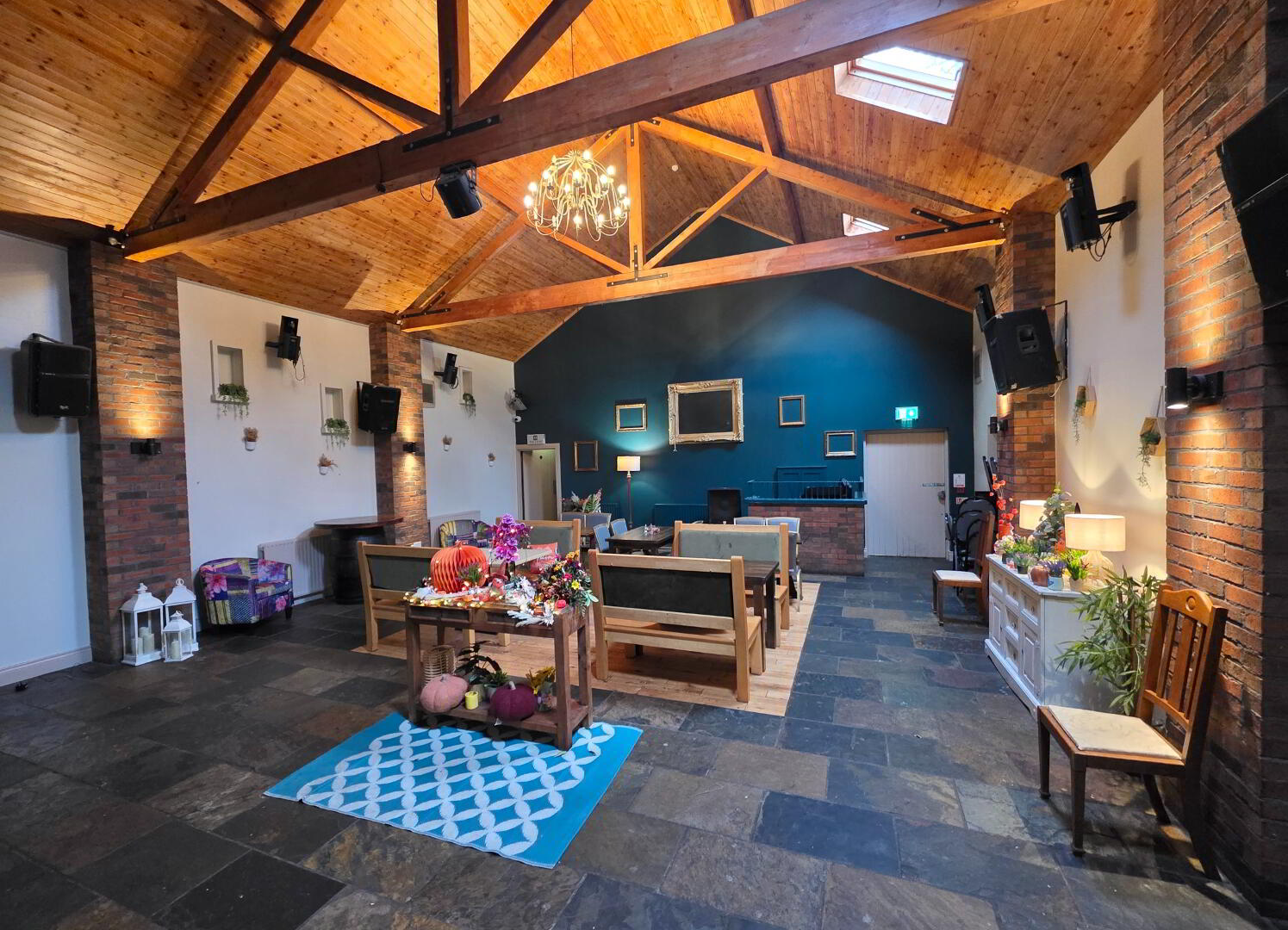 42'6 x 17'1 with feature 'Inglenook' fireplace complete with black multi-fuel stove, fully stocked bar complete with tables and seating, part tongue and groove wooden floor, part tiled floor, pool table area.