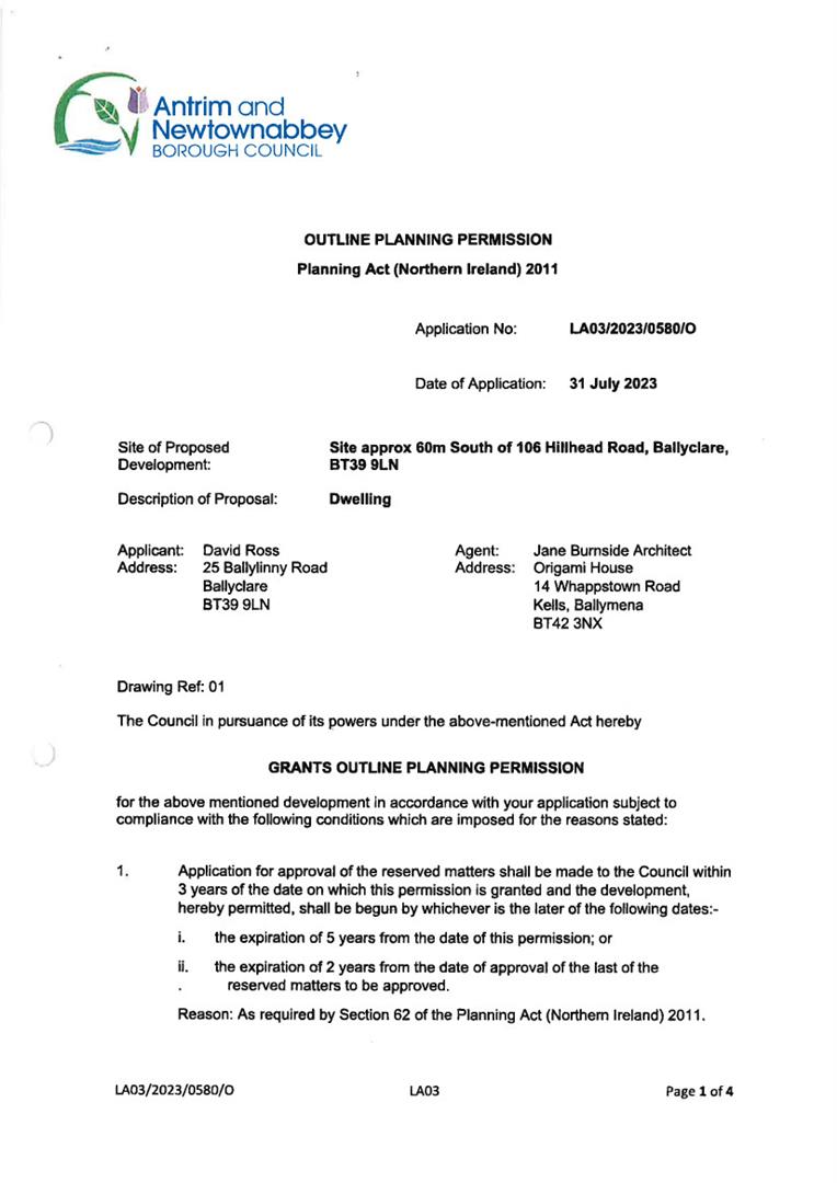 Building Site 106 Hillhead Road, Ballyclare, BT39 9LN