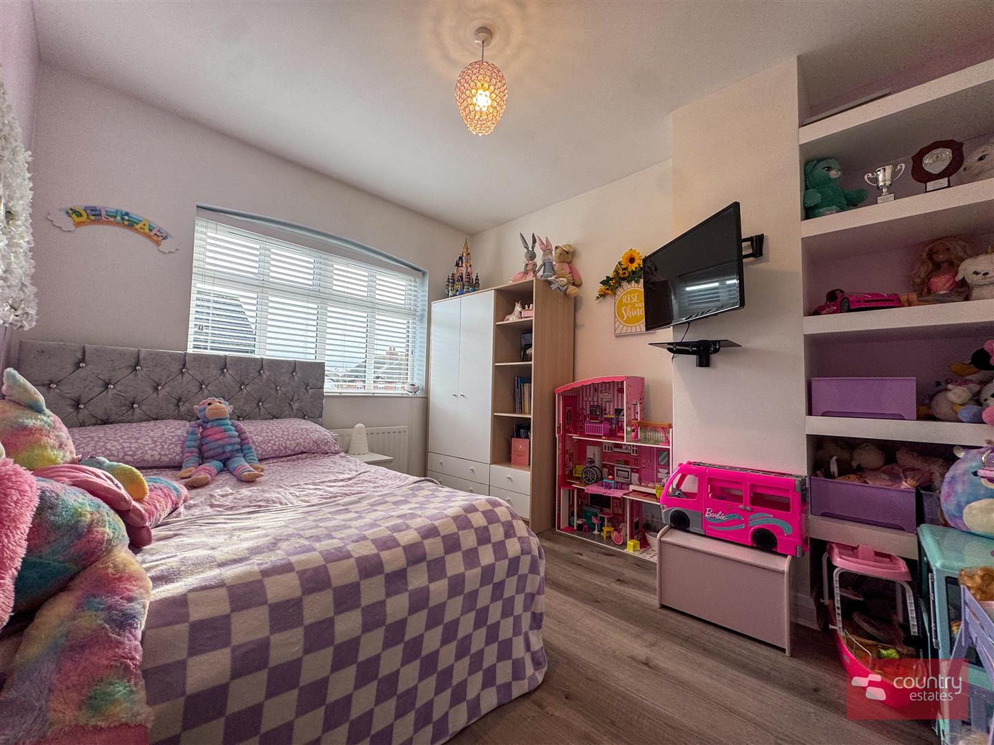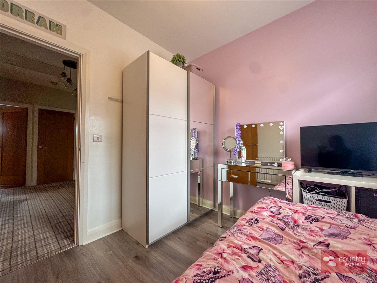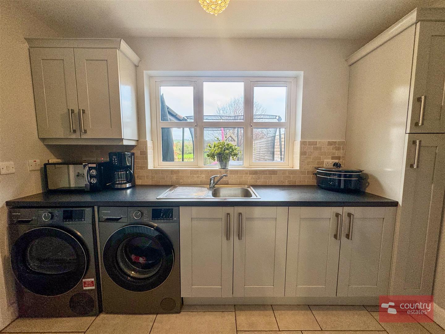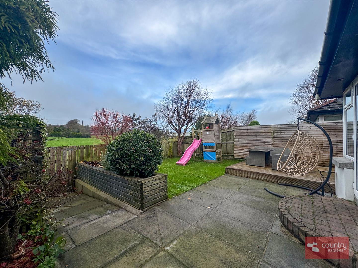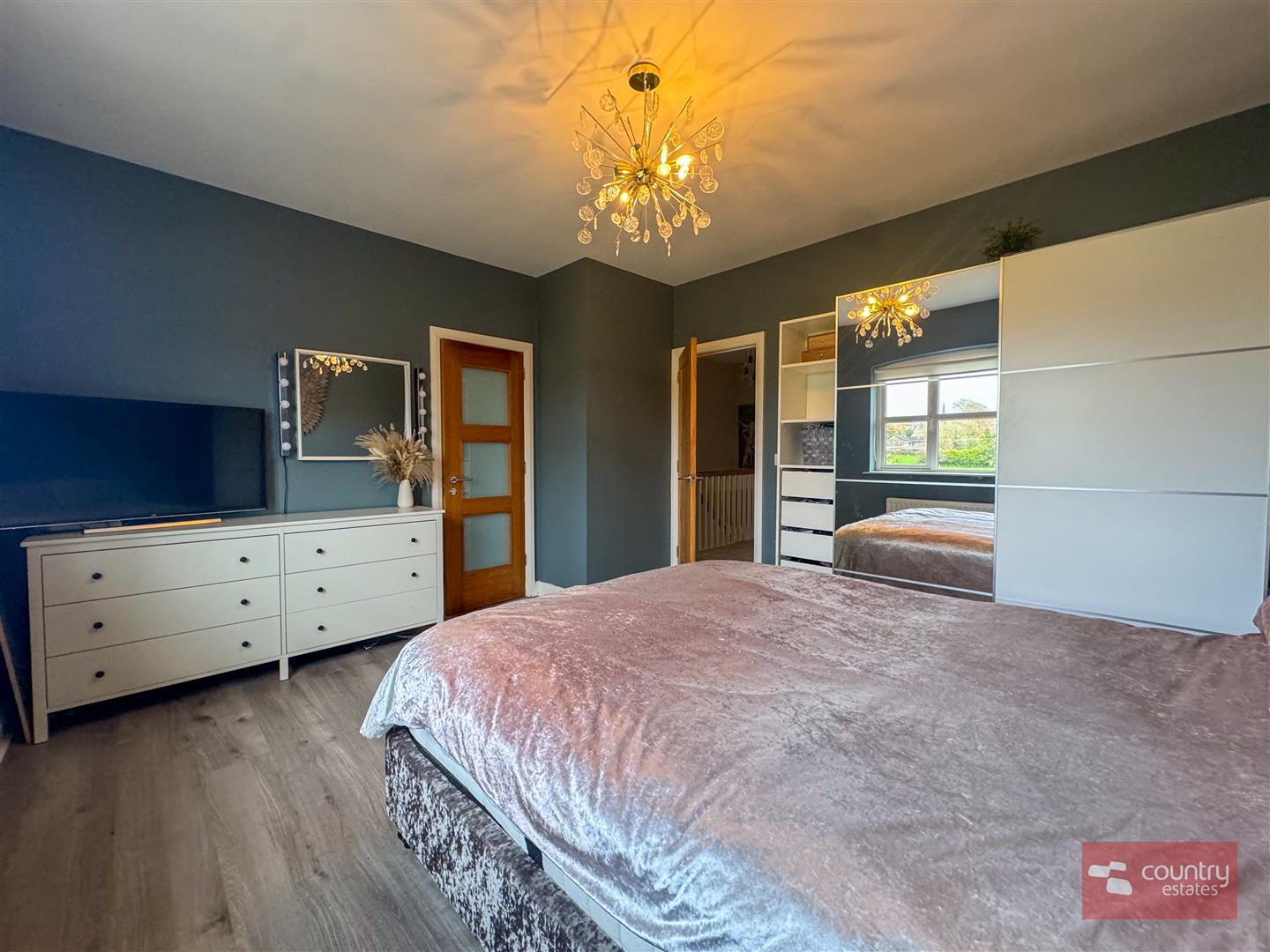 Twin PVC double glazed door to garden. Enjoys far reaching rural views.