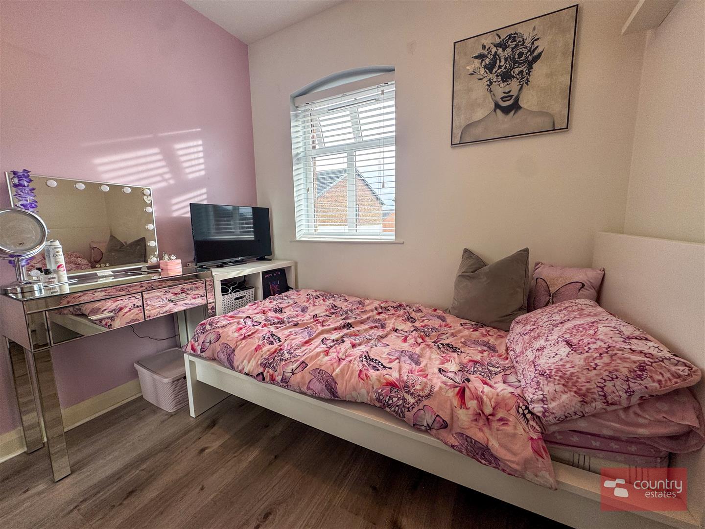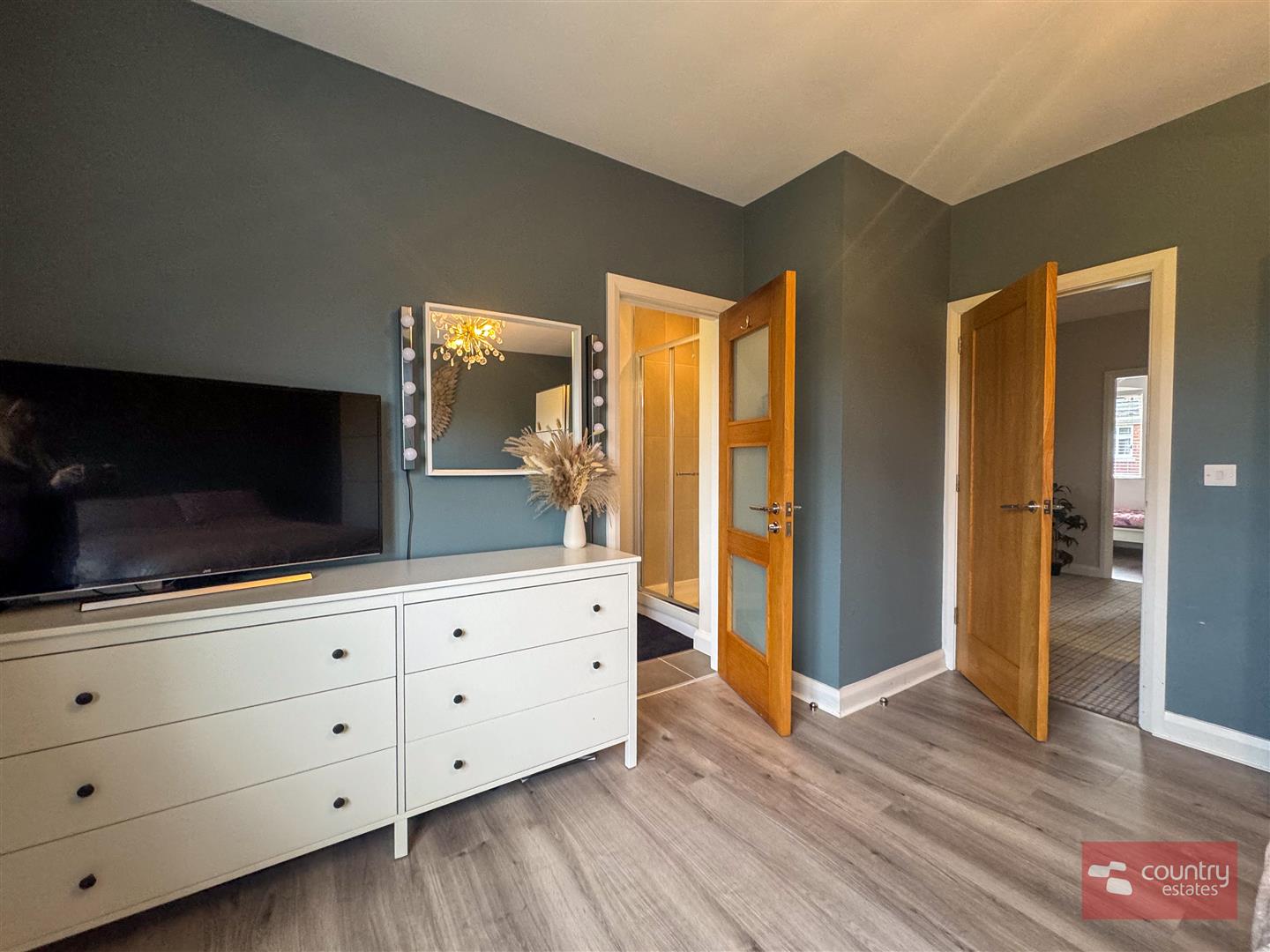 Laminate flooring. Enjoying unspoilt far reaching views over surrounding countryside.