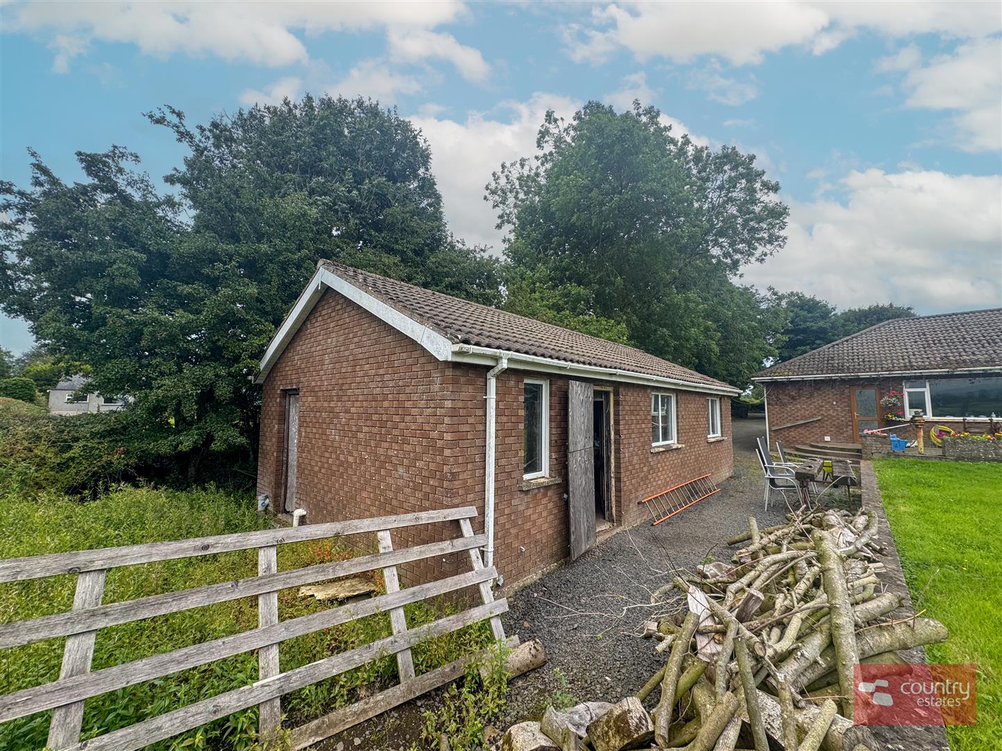 Approx. Up and over door. Power and light. Plumbed for w.c.