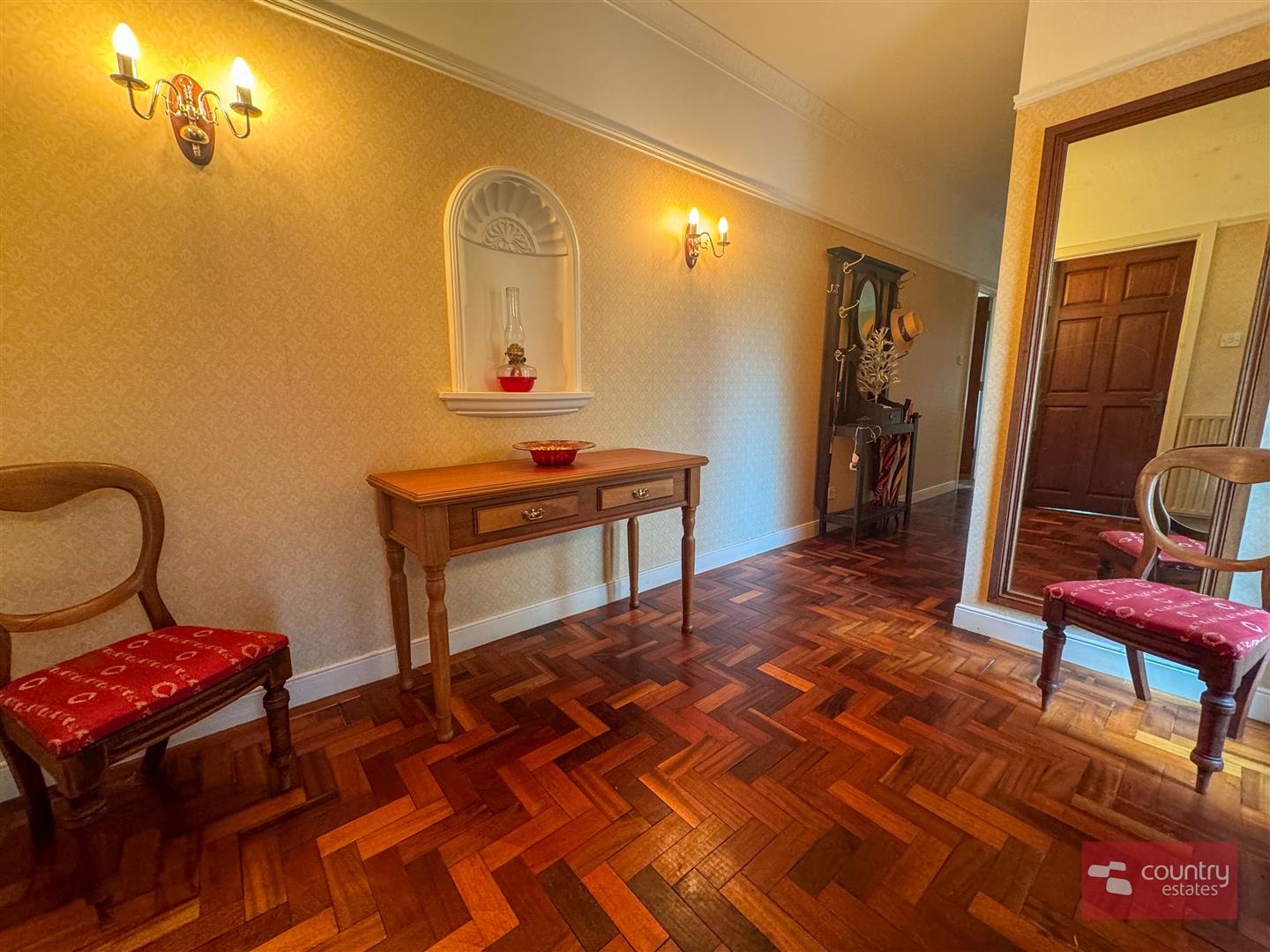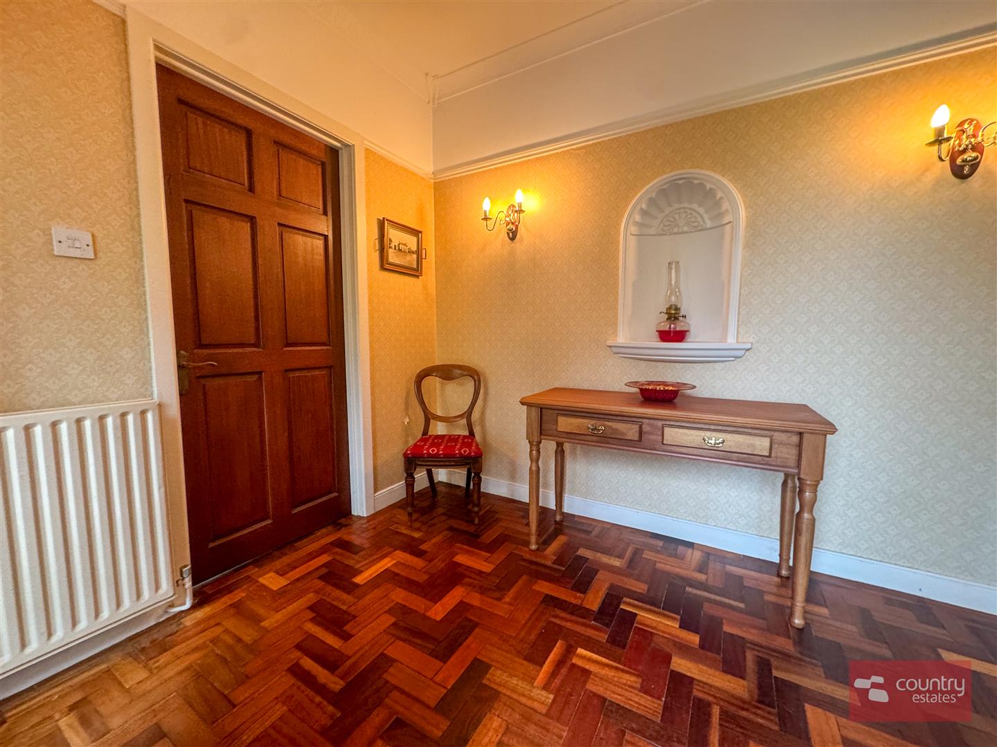 Solid wood floor. Duel wall lighting. Coved ceiling.