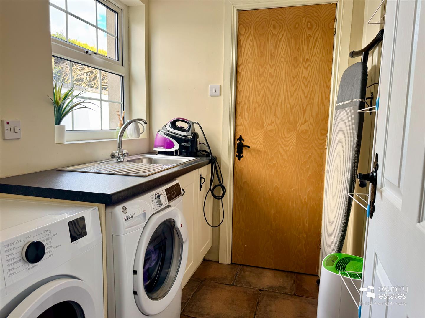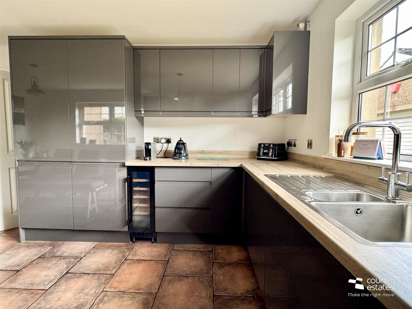 Fitted range of modern shaker style high and low level units. Plumbed for washing machine. Space for tumble dryer. Single drainer stainless steel sink unit.