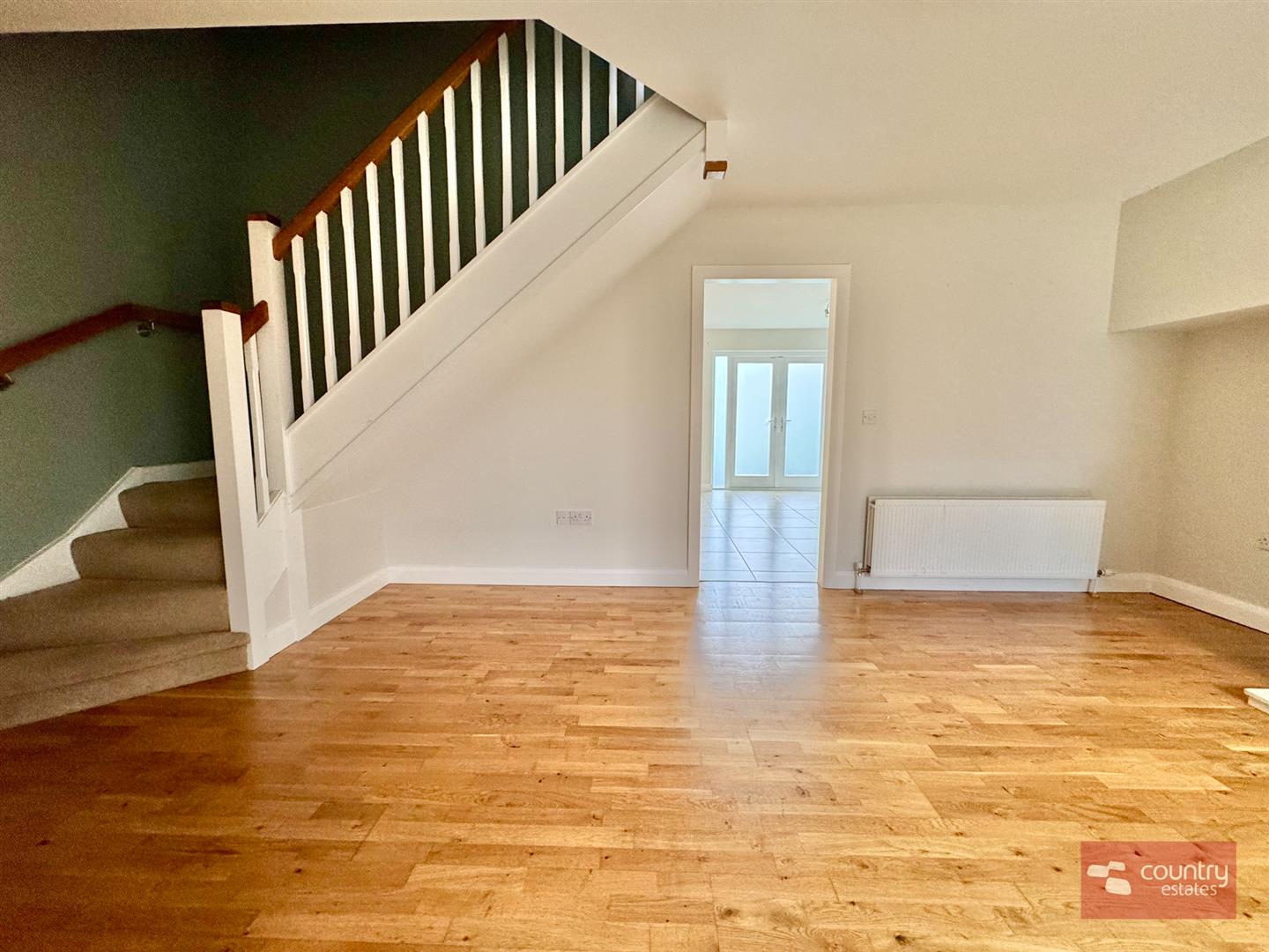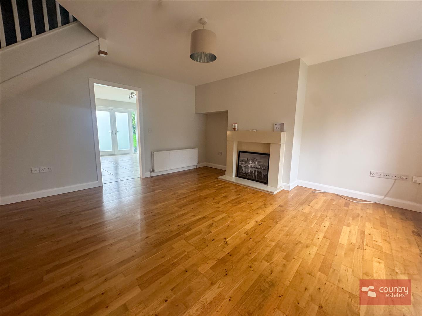 At widest points. Feature polished granite fireplace and hearth with inlaid gas fire. Built in storage cupboard housing gas fired boiler. Solid oak flooring. Stairwell to first floor.