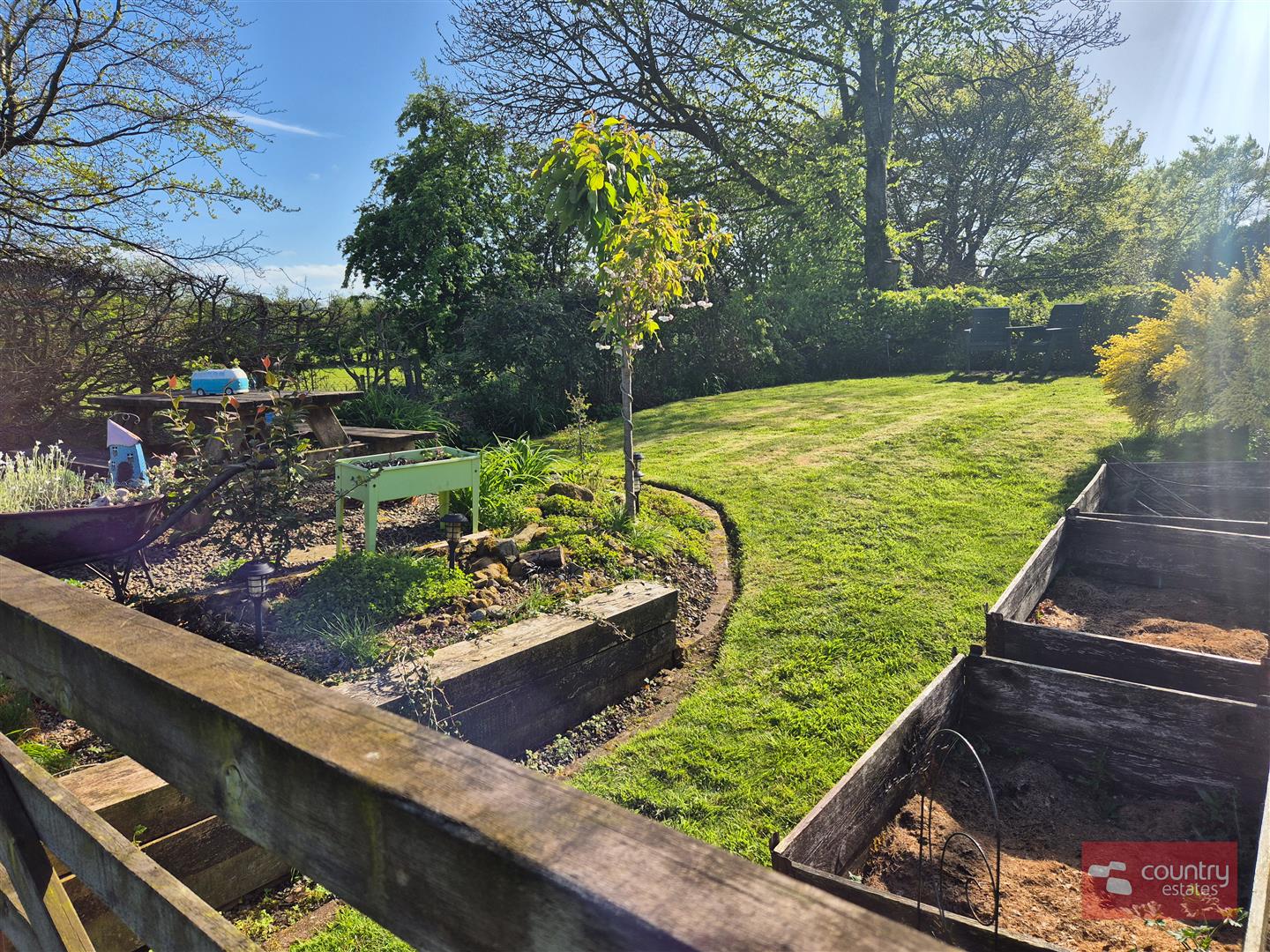 Extensive private garden to rear in lawn screened by mature trees and hedgerow.